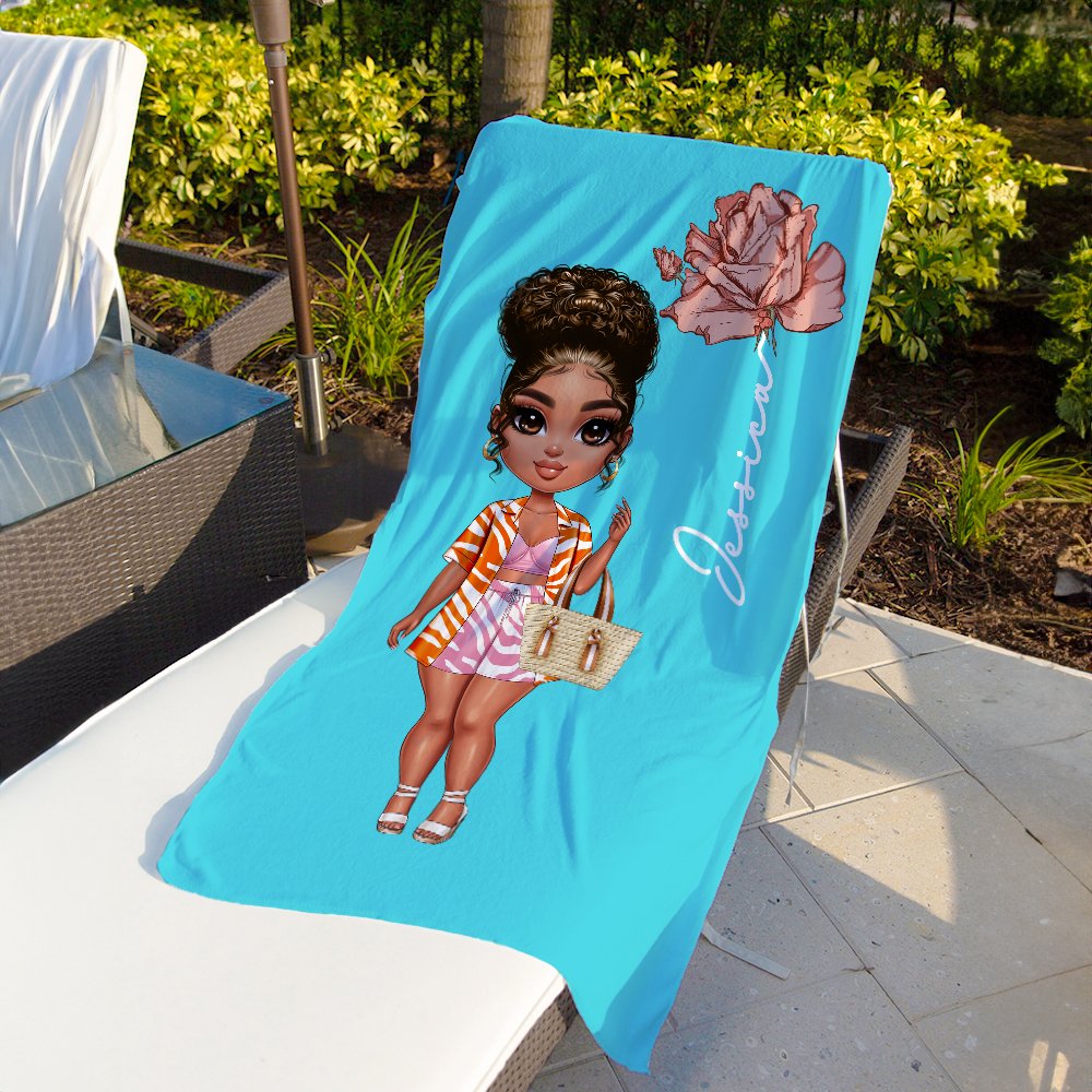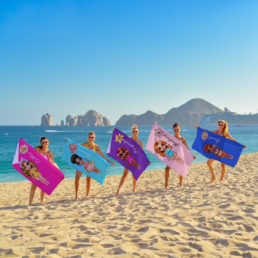 Ons strandlaken is ontworpen met een levendig cartoonfiguur en heeft heldere kleuren. De bijpassende geboortebloem en de naam van de personages maken elk strandlaken uniek.