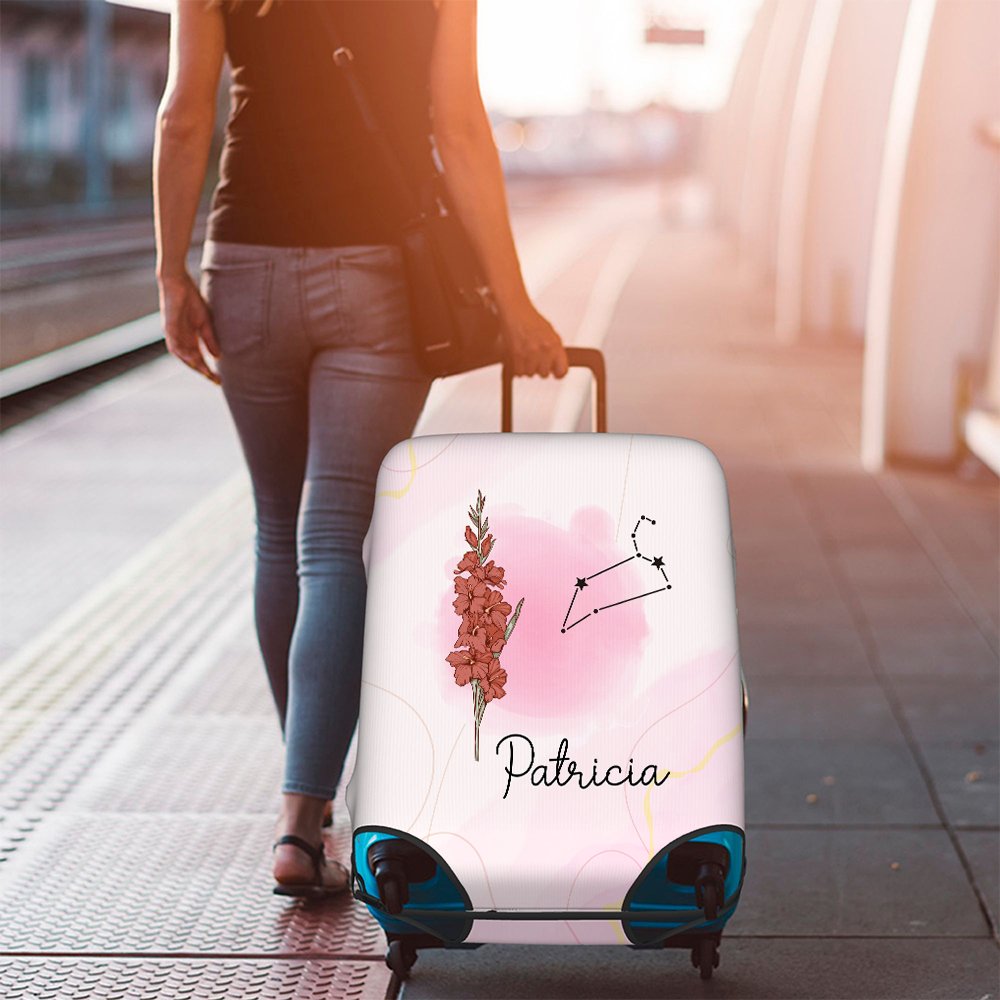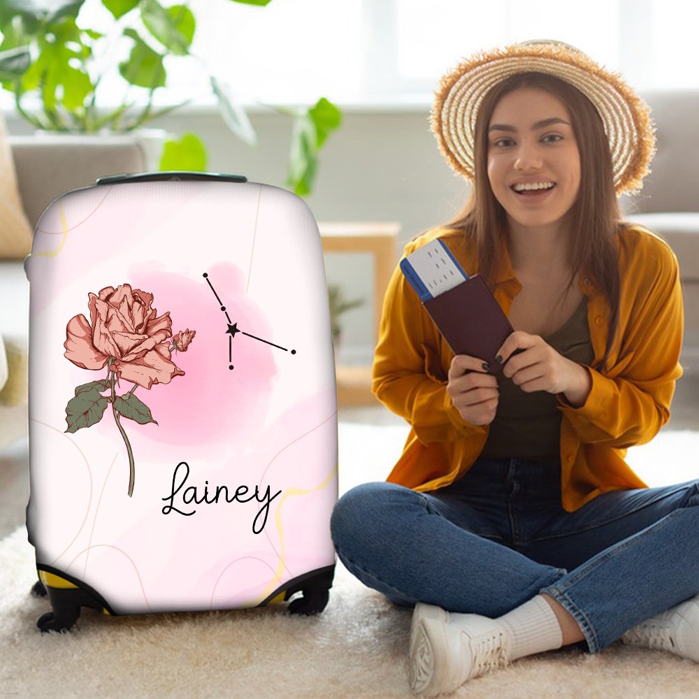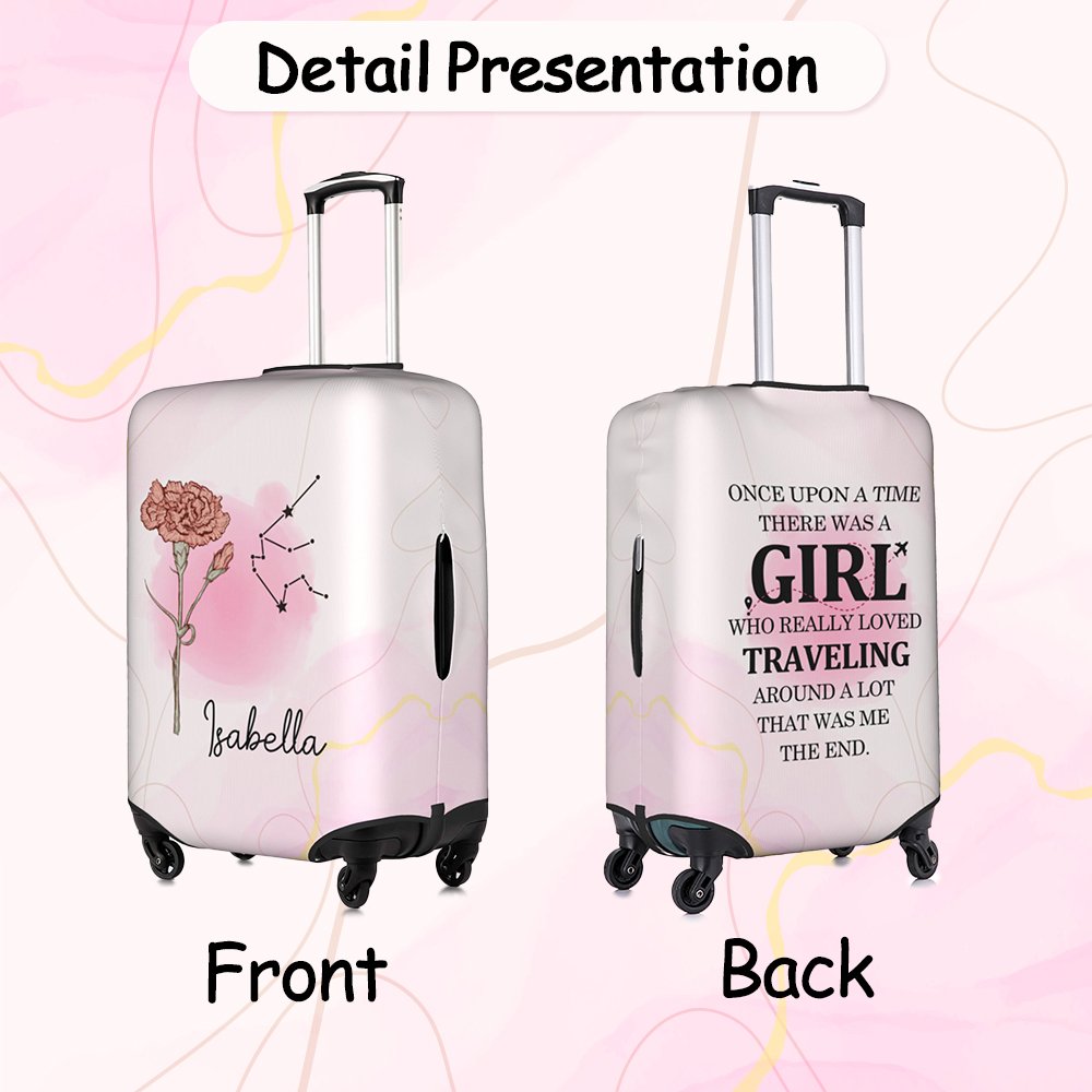 Deze gepersonaliseerde reisbagagehoes, uniek aangepast ontwerp en romantische roze stijl maken elke reis vol persoonlijkheid en charme. De zorgvuldige aanpassing van de naam, dierenriem en geboortebloem toont je zorg en bezorgdheid en laat de ontvanger je unieke smaak en diepe genegenheid voelen. Het woord "... there was a girl who loved traveling around a lot, that was me..." is afgedrukt op deze bagagehoes, perfect om je liefde voor reizen te tonen.