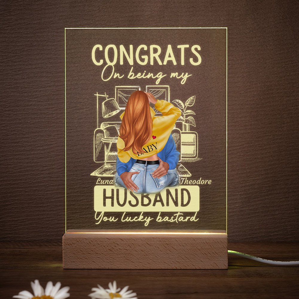 Gepersonaliseerd Gefeliciteerd dat je mijn man bent, gelukzak Acryl Nachtlampje Plaque met paar namen Valentijnsdag geschenk voor koppels