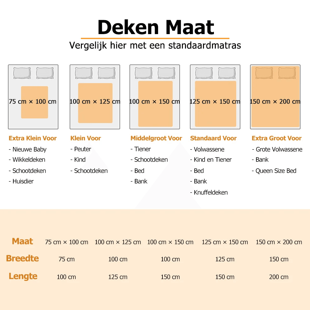 | Afmeting: | Fleece deken - 75 cm × 100 cm, 100 cm × 125 cm, 100 cm × 150 cm, 125 cm × 150 cm, 150 cm × 200 cm, sherpa deken: 100 cm × 125 cm, 125 cm × 150 cm, 150 cm × 200 cm |