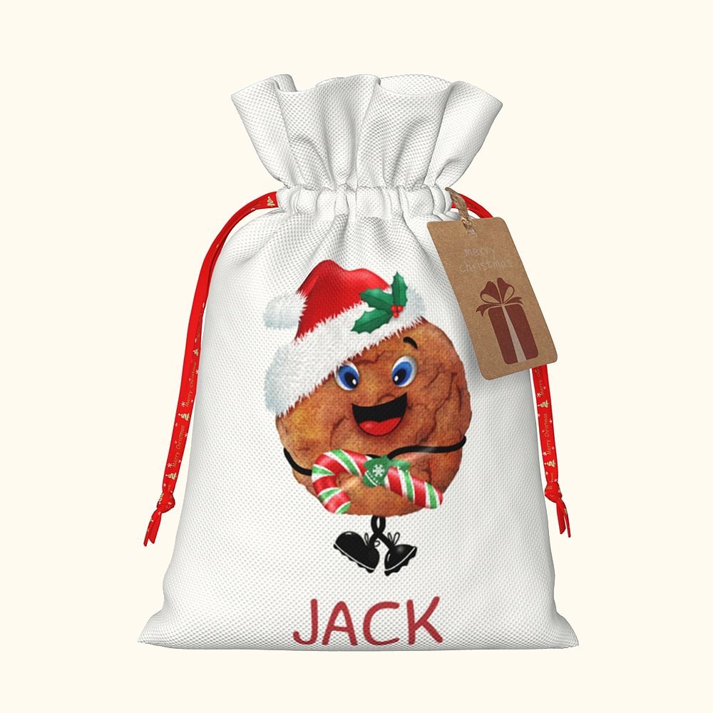 Gepersonaliseerde Cookie Boy Girl Gift Bag met naam Canvas koord tas Kerst geschenkverpakking met opknoping Tag Holiday Party Gift voor familie Cookie liefhebbers