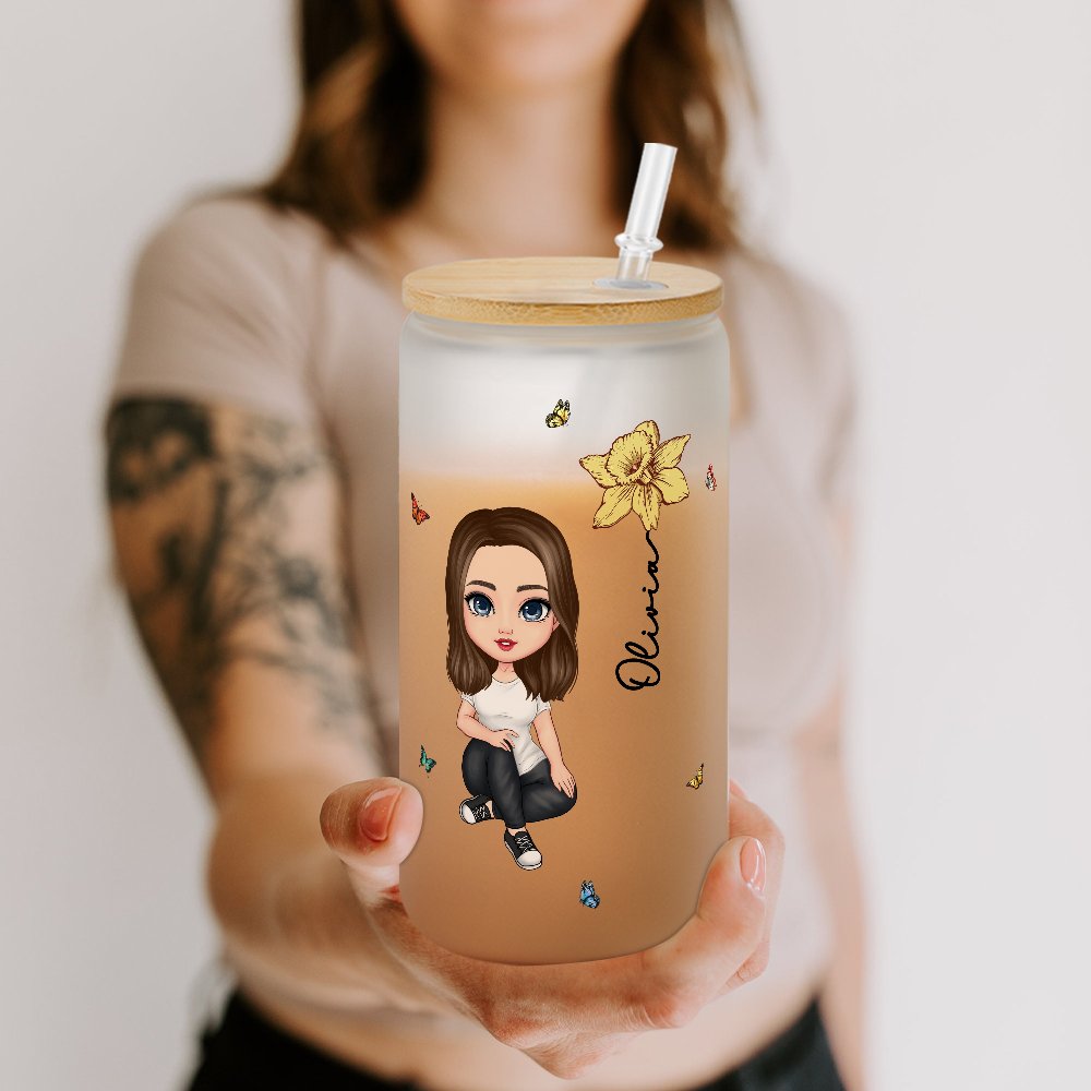 Met het thema "COOL SISTERS CLUB" is deze frosted beker gekoppeld aan een uniek stripfiguurtje, dat het vermogen om problemen op te lossen en een unieke persoonlijkheid laat zien. De beker kan ook worden aangepast met een heel persoonlijk verjaardagsbloemmotief en naam, waardoor hij nog specifieker wordt.