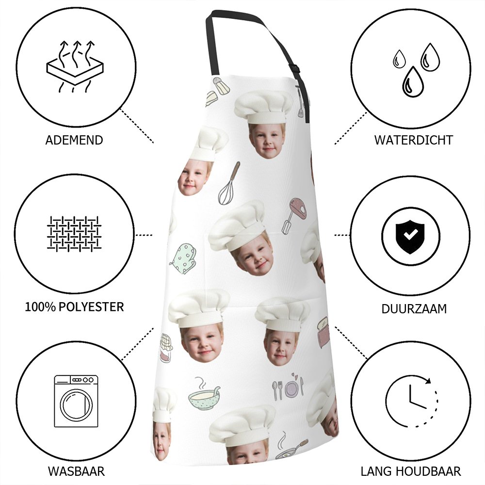 Dit schort is verkrijgbaar in 8 kleuren, passend bij iedere keukenstijl of persoonlijke voorkeur, en voegt tijdens het koken een vleugje kleur toe. De gepersonaliseerde avatar en keukengereipatronen brengen de vreugde van koken en de warmte van familie tot leven, waardoor gebruikers zich gelukkig en tevreden voelen.