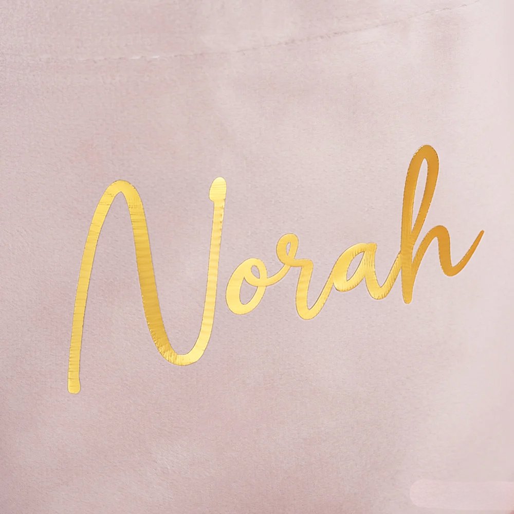 Deze buideltas in zachte tinten warm roze en blauw heeft de vorm van een konijntje met twee oren aan de rand en een schattige pomponstaart aan de achterkant, wat het heel speels maakt. Je kunt er je naam aan toevoegen om een speciale tas voor je kind te maken.