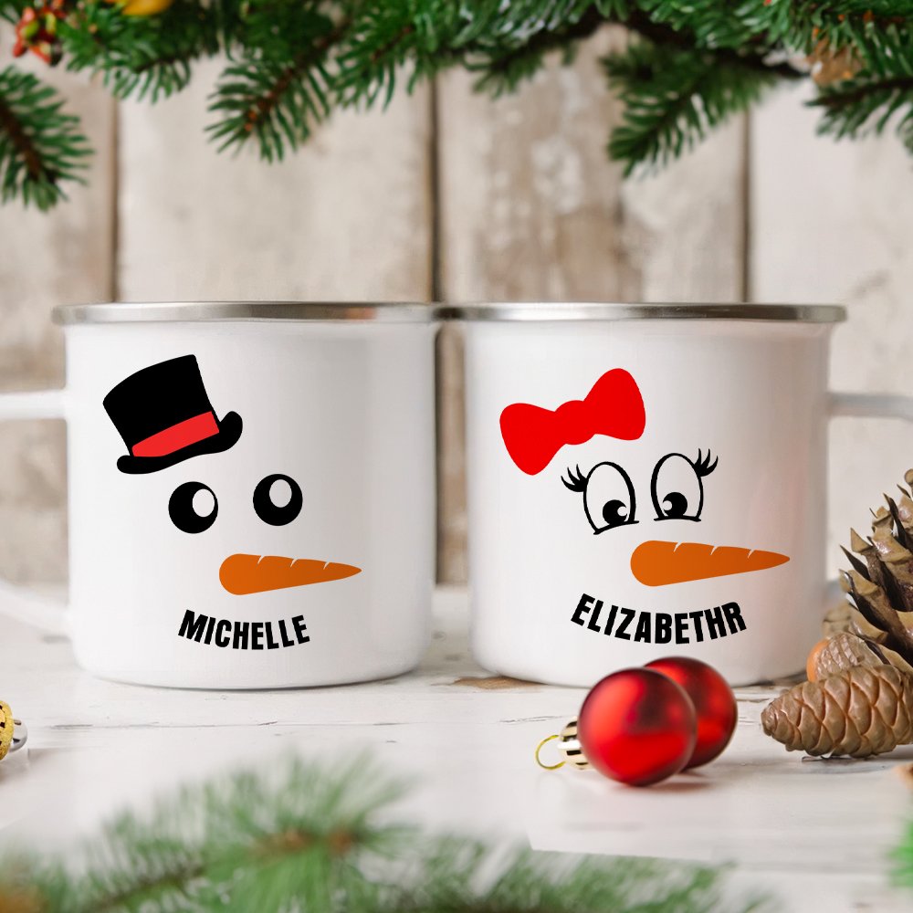 Gepersonaliseerde Leuke Wortel Sneeuwman 12oz Emaille Mok met Naam Verjaardag Kerstcadeau voor Familie Kinderen