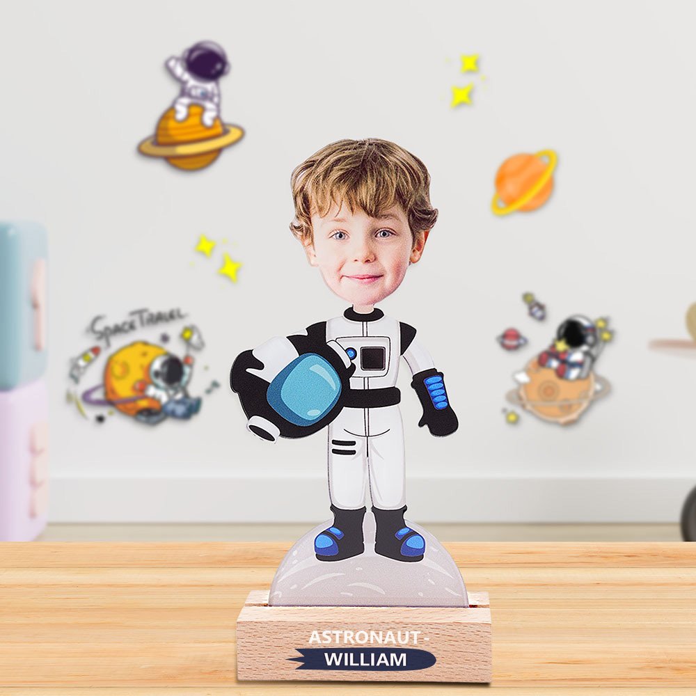 Voeg het gezicht van een kind en hun naam toe om een echt speciaal aandenken te maken. Het bevordert een persoonlijke band met hun liefde voor ruimteverkenning en prikkelt hun nieuwsgierigheid naar het heelal.