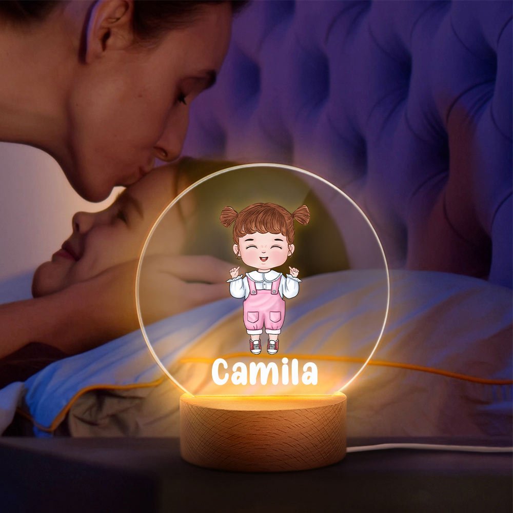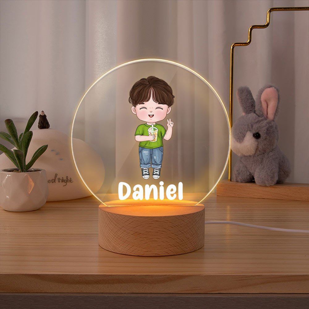 Ons nachtlampje heeft een schattige cartoonafbeelding van een jongen of meisje. Je kunt het ook aanpassen met de naam van je kind om er trots op te zijn en het nog specialer te maken. Het moet elk kind een glimlach op het gezicht geven.