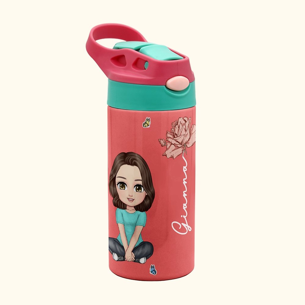Deze waterfles heeft een gepersonaliseerd ontwerp van een schattig stripfiguurtje, zodat kinderen hun unieke persoonlijkheid en stijl kunnen uitdrukken. Het is ook gekoppeld aan een verjaardagsbloem en naam, zodat elk kind zijn eigen bloem kan vinden en zijn individuele charme kan laten zien.