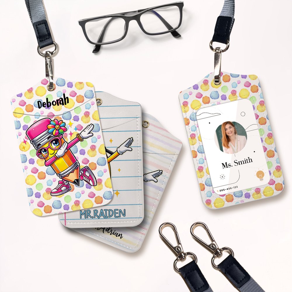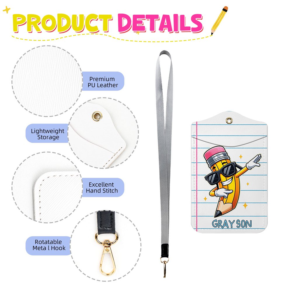Gepersonaliseerde leuke cartoon potlood PU lederen ID badge houder met naam en sleutelkoord Office terug naar school Teacher's Day Gift voor leraar vriend