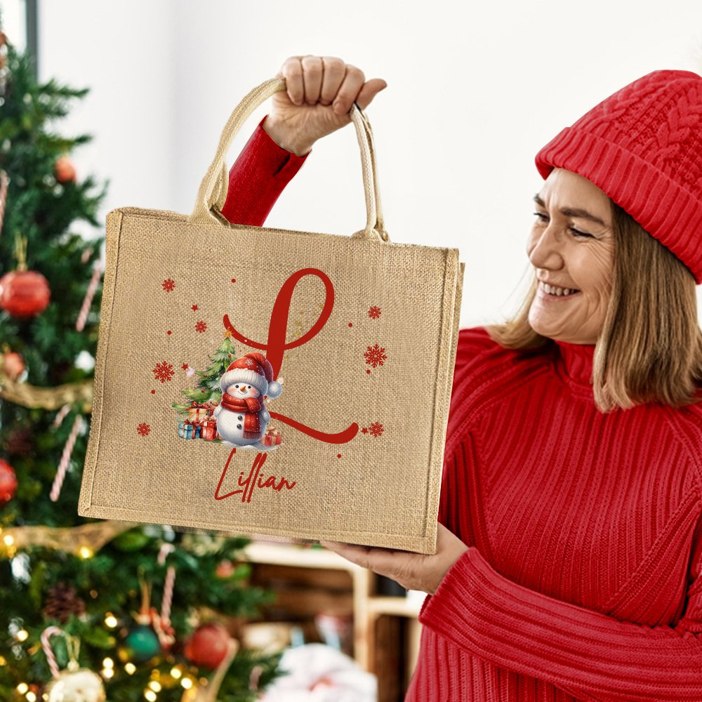 De tas heeft een prominente initiaal en kan worden aangepast met de initiaal en naam. De initialen worden omringd door charmante kerstmannen, bomen en cadeautjes, waardoor het perfecte kerstthema ontstaat. Het gebruik van rode, groene en gouden accenten versterkt de feestelijke sfeer en geeft de essentie van Kerstmis weer. Elk stuk staat voor winterse vrolijkheid en is een uitstekend kerstaccessoire.