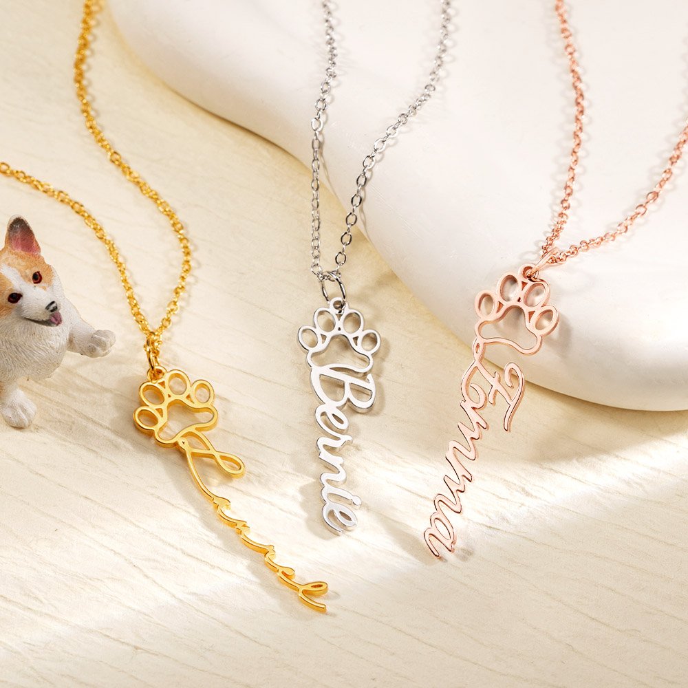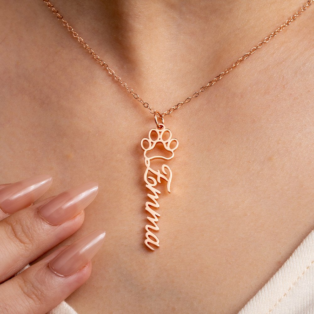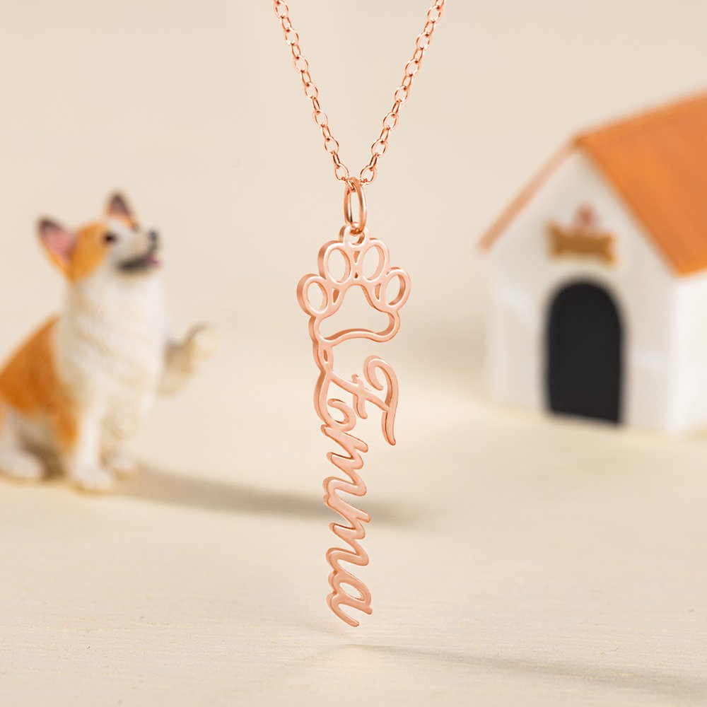 Deze ketting is geïnspireerd op de delicate vorm van een hondenpoot en symboliseert de diepe emotionele band tussen jou en je huisdier. In combinatie met een aanpasbare naam benadrukt het jouw exclusieve, unieke charme.