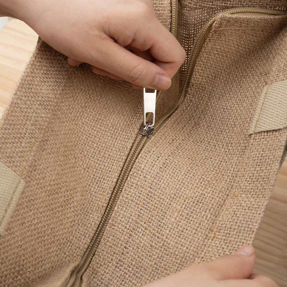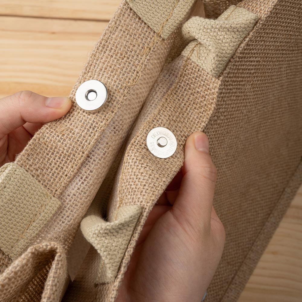 Deze tas is gemaakt van hoogwaardig jutemateriaal, is mooi en duurzaam en bevat geen schadelijke stoffen. Hij ondersteunt uitstekend en gaat lang mee, kan worden hergebruikt, helpt de vraag naar plastic tassen te verminderen en helpt het milieu te beschermen. Je kunt kiezen uit verschillende stijlen, waaronder open tassen, tassen met magnetische gespen en tassen met ritsen om aan verschillende behoeften te voldoen.