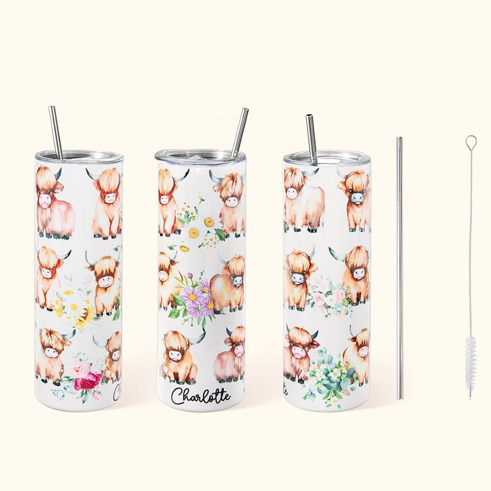 Deze beker heeft een charmante highland koe versierd met prachtige bloemenaccenten, waardoor een heerlijke Boheemse stijl ontstaat. Personaliseer hem met een naam om hem nog specialer te maken.