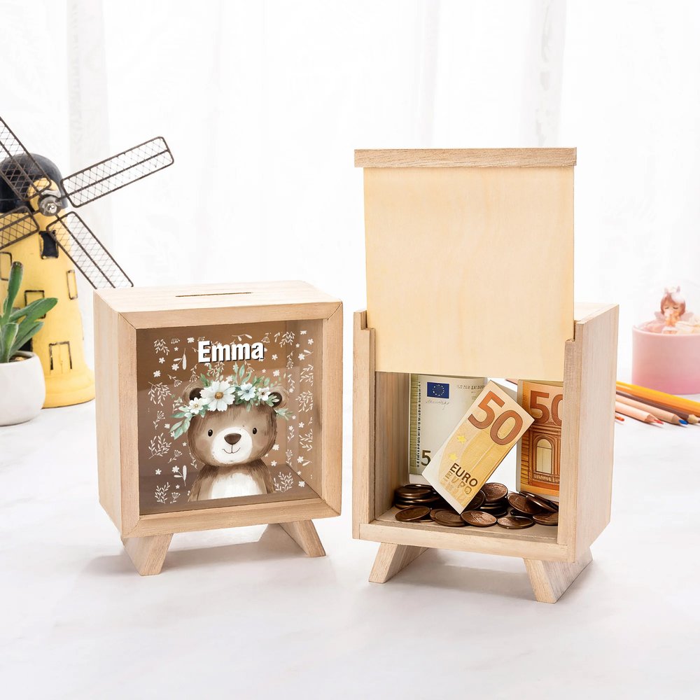 Dit charmante spaarvarken is versierd met prachtige dieren- en bloemmotieven waar kinderen dol op zijn. Je kunt het spaarvarken personaliseren met een dier naar keuze en de naam van het kind, waardoor het een uniek en persoonlijk cadeau wordt. Zo wordt sparen al op jonge leeftijd een leuke en waardevolle gewoonte. Perfect voor de babykamer of kinderkamer. Niet alleen praktisch om geld te bewaren, maar ook een mooie decoratie – een blijvend aandenken voor elk kind.