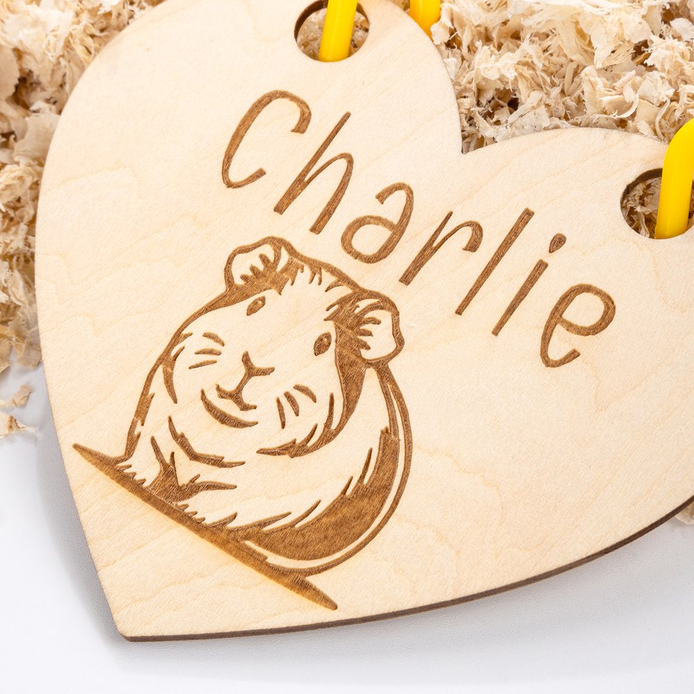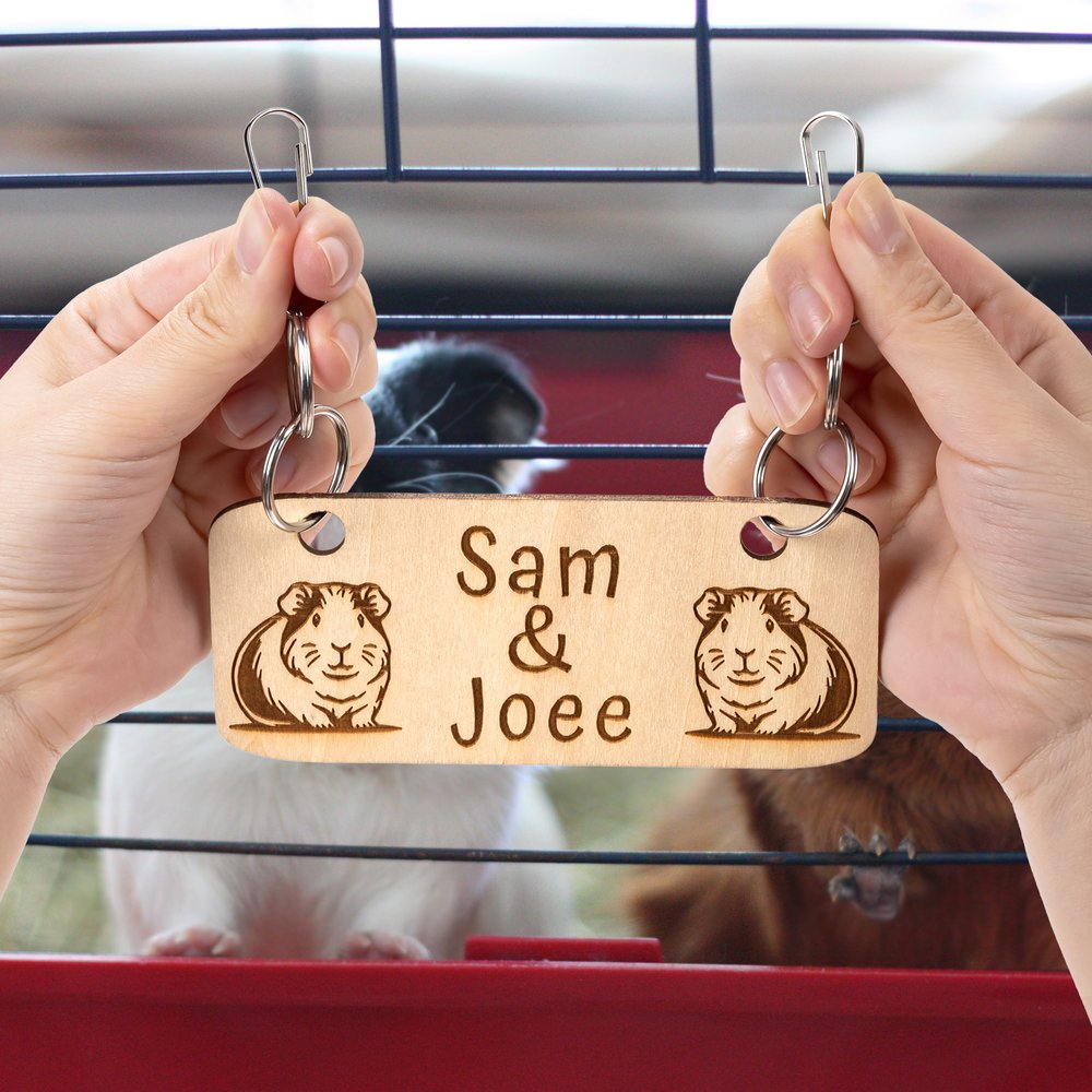 Als naamplaatje kan het gemakkelijk aan het deurtje van een caviahok of in de leefruimte van het huisdier worden gehangen om de naam van het huisdier duidelijk weer te geven. Het dient ook als decoratie en voegt een vleugje persoonlijkheid en warmte toe aan de leefruimte van het huisdier. Of het nu voor dagelijks gebruik is of om de leefomgeving van het huisdier te versieren, het is zeer geschikt.