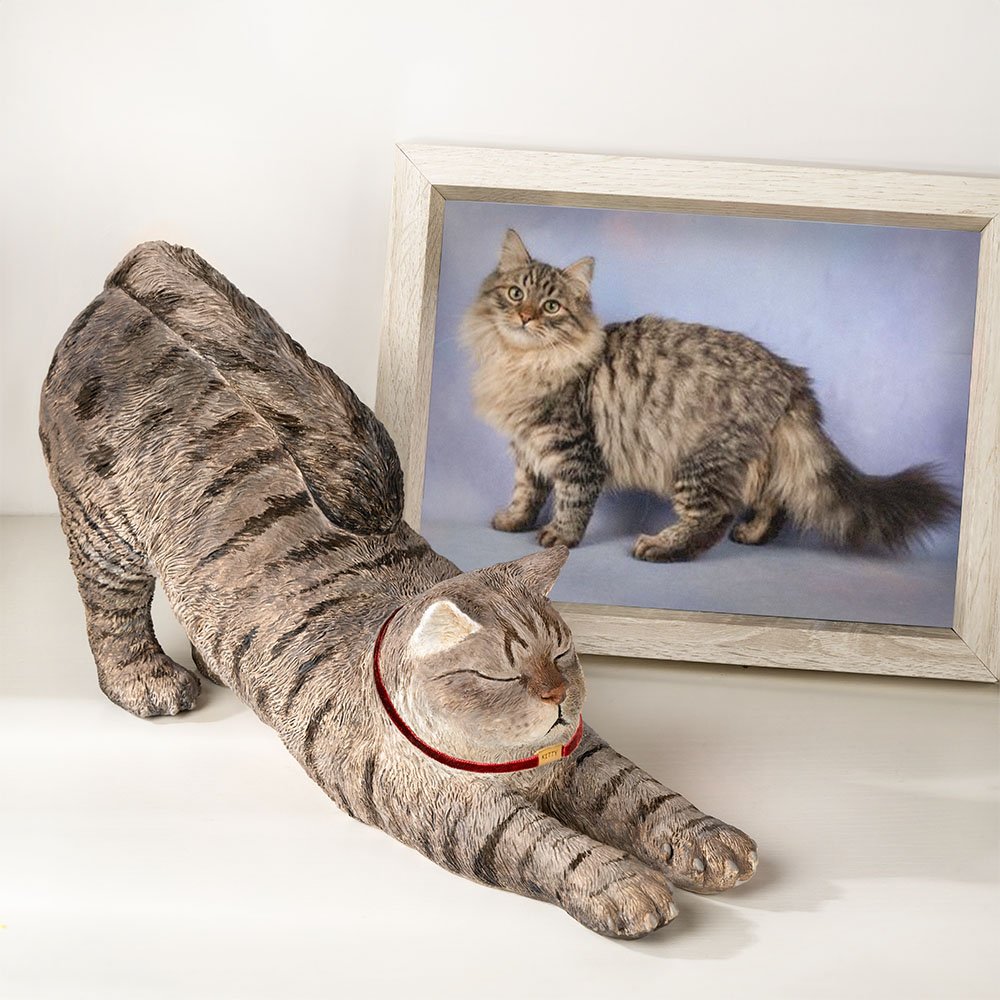 Dit boekensteunontwerp is geïnspireerd op de klassieke strekhouding van een kat. De natuurlijke rek van een kattenlichaam zorgt voor een stabiele steunstructuur die je boeken stevig vasthoudt en tegelijkertijd een charmant artistiek tintje toevoegt. Je kunt foto's van je kat uploaden voor een boekensteun op maat of kiezen uit onze standaardstijlen. Bovendien kun je het label op de nek van de kat personaliseren met een naam voor een exclusief tintje.