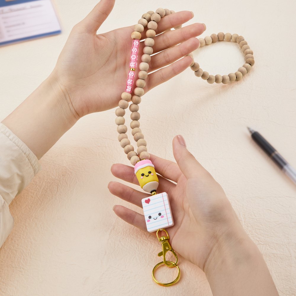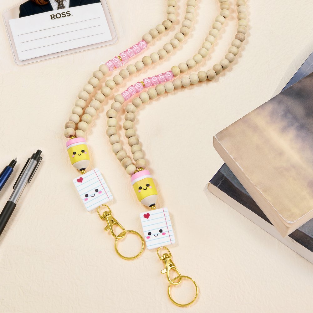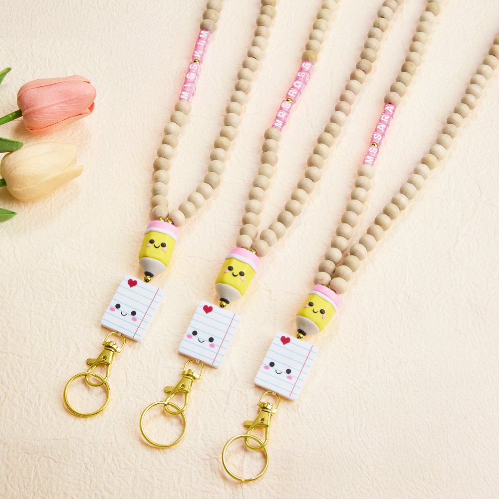 Gepersonaliseerde leuke potlood papier houten kralen badge sleutelkoord ID-kaarthouder met titel en naam terug naar school Waardering verjaardagscadeau voor leraren