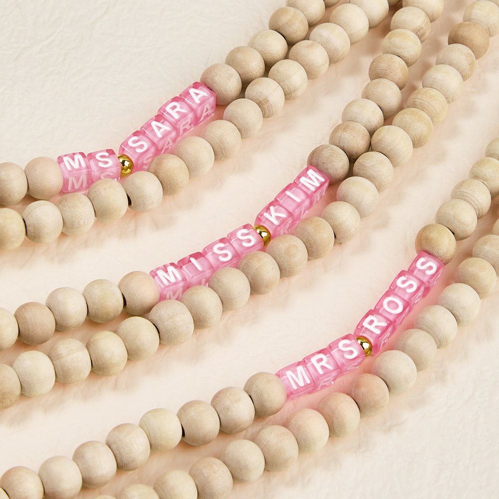 Dit sleutelkoord is gemaakt van houten kralen van hoge kwaliteit en garandeert duurzaamheid voor dagelijks gebruik. Of het nu in een druk klaslokaal is of tijdens buitenactiviteiten, hij behoudt zijn uiterlijk en is bestand tegen veelvuldig gebruik zonder schade. Bovendien zorgt het lichtgewicht ontwerp ervoor dat je hem comfortabel en langdurig kunt dragen.