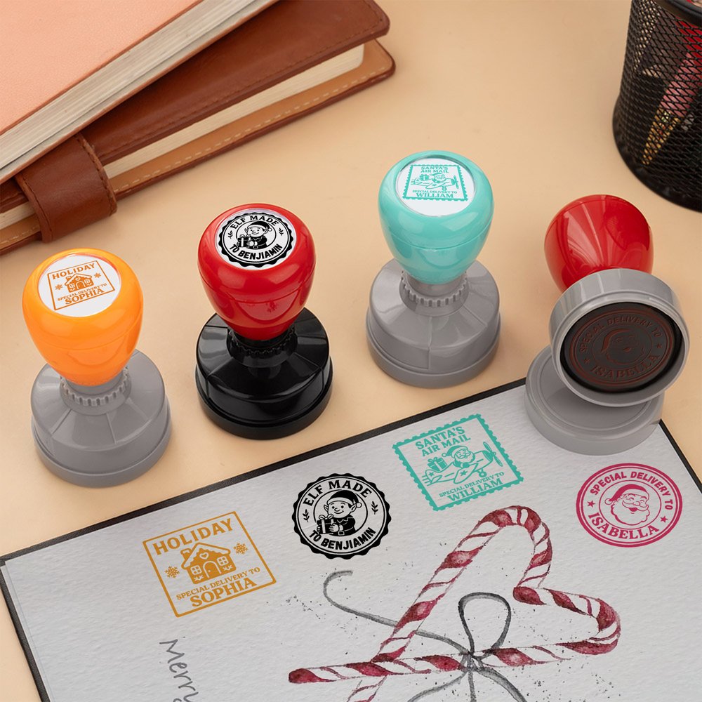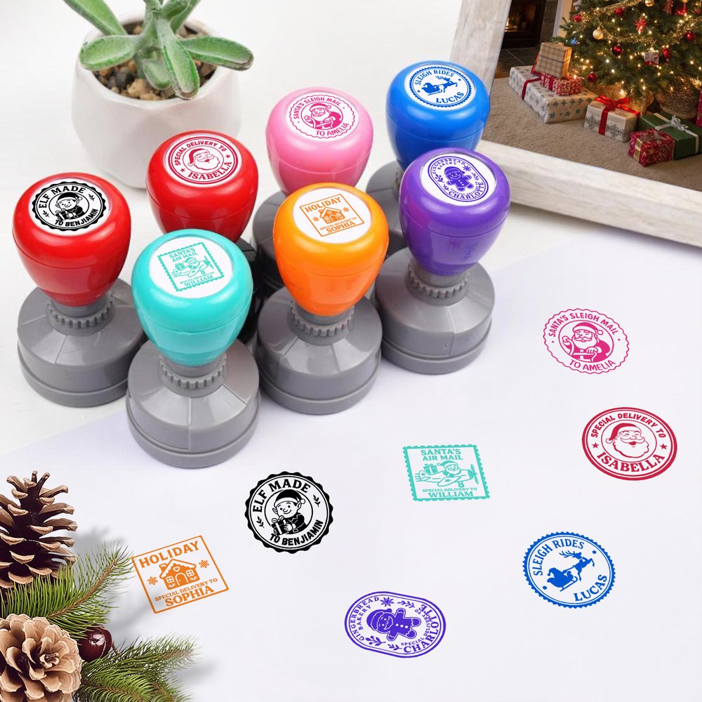 Deze stempel combineert je naam met schattige cartoonachtige kerstelementen en geeft zo een uniek tintje aan je cadeaus en wenskaarten. Elke stempel kan worden aangepast, zodat elk cadeau je persoonlijke stijl en emoties weerspiegelt, waardoor je zegeningen stralen met warmte in de details.