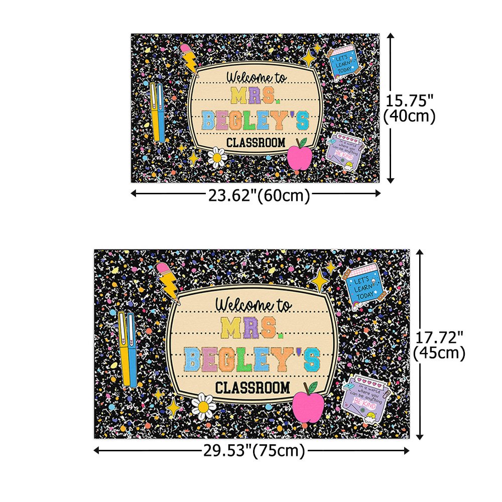 Geef deze deurmat voor lerarendag, kerstmis of het terug-naar-school-seizoen aan leraren van de kleuterschool tot de middelbare school en hoger. Aangepaste namen en exclusieve welkomstboodschappen voegen erkenning en respect voor het werk van leraren samen in de deurmat.