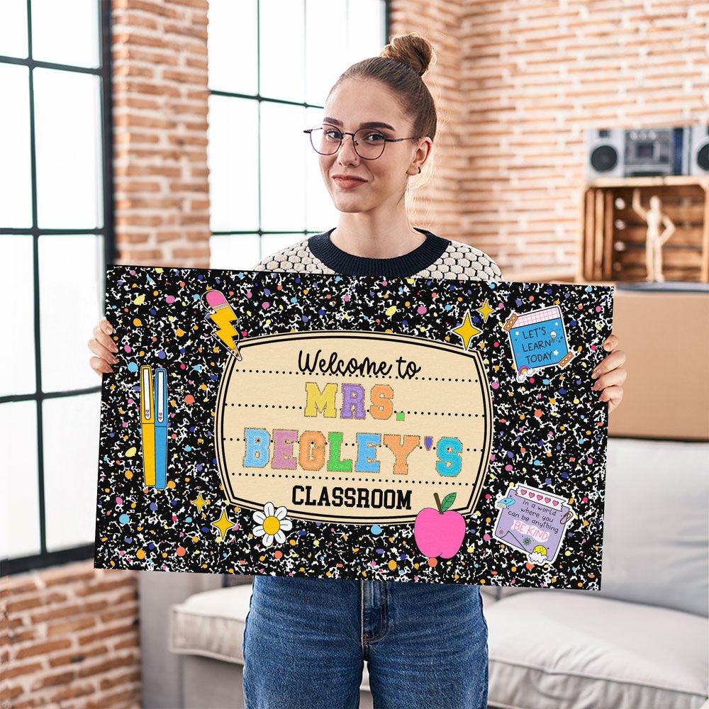 De deurmat heeft een klassieke compositieboekstijl en kan de namen van leerkrachten aanpassen en kiezen uit 2 stijlen, inclusief exclusieve berichten zoals "Welkom in de klas" en "Ik ben zo blij dat je hier bent". Levendige patronen in combinatie met aanpasbare inhoud maken van de deurmat een "persoonlijke welkomstkaart" bij de ingang van de klas.