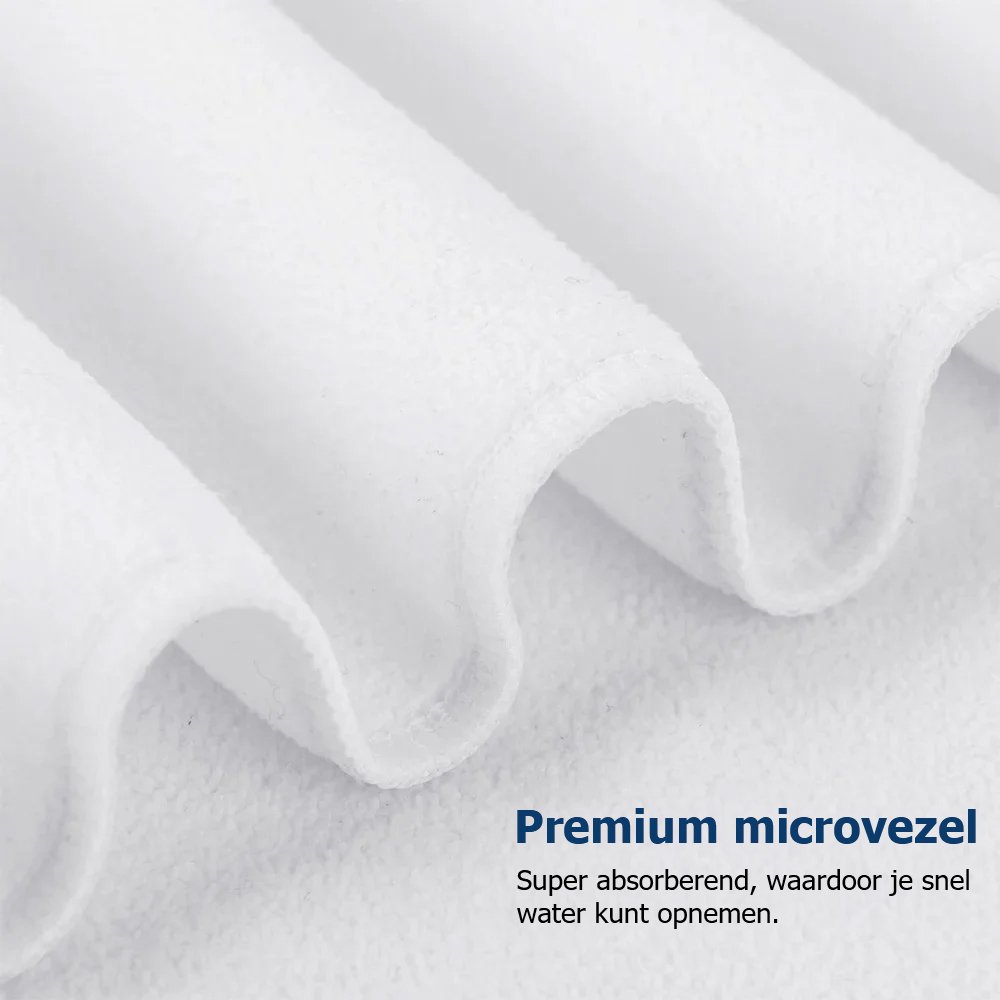 | Zorg: | - Machinewas in koud of warm water. Vermijd heet water, bleekmiddel en wasverzachters, omdat deze de microvezelstof kunnen beschadigen. - Drogen aan de lucht wordt aanbevolen om de zachtheid en het absorptievermogen te behouden. Als je een droger gebruikt, gebruik dan een lage warmtestand en vermijd te lang drogen. - Wees voorzichtig bij het gebruik: wrijf niet over ruwe oppervlakken om trek- of scheurplekken in de stof te voorkomen. - Bewaar de handdoek in een droge, goed geventileerde ruimte om geurtjes of schimmelvorming te voorkomen. Vermijd vochtige omgevingen. |