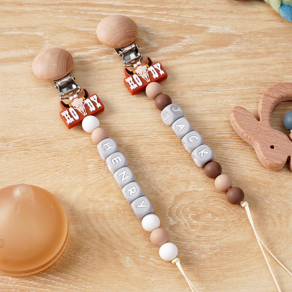 Deze charmante fopspeenklem heeft een speels Western-kralenontwerp dat een grillig tintje toevoegt aan de benodigdheden van je baby. Er zijn niet alleen drie stijlen om uit te kiezen, maar ze kunnen ook gepersonaliseerd worden met de naam van je baby. De felle kleuren en leuke patronen trekken de aandacht van je baby en zorgen voor een uniek souvenir dat de persoonlijkheid van je baby weerspiegelt.