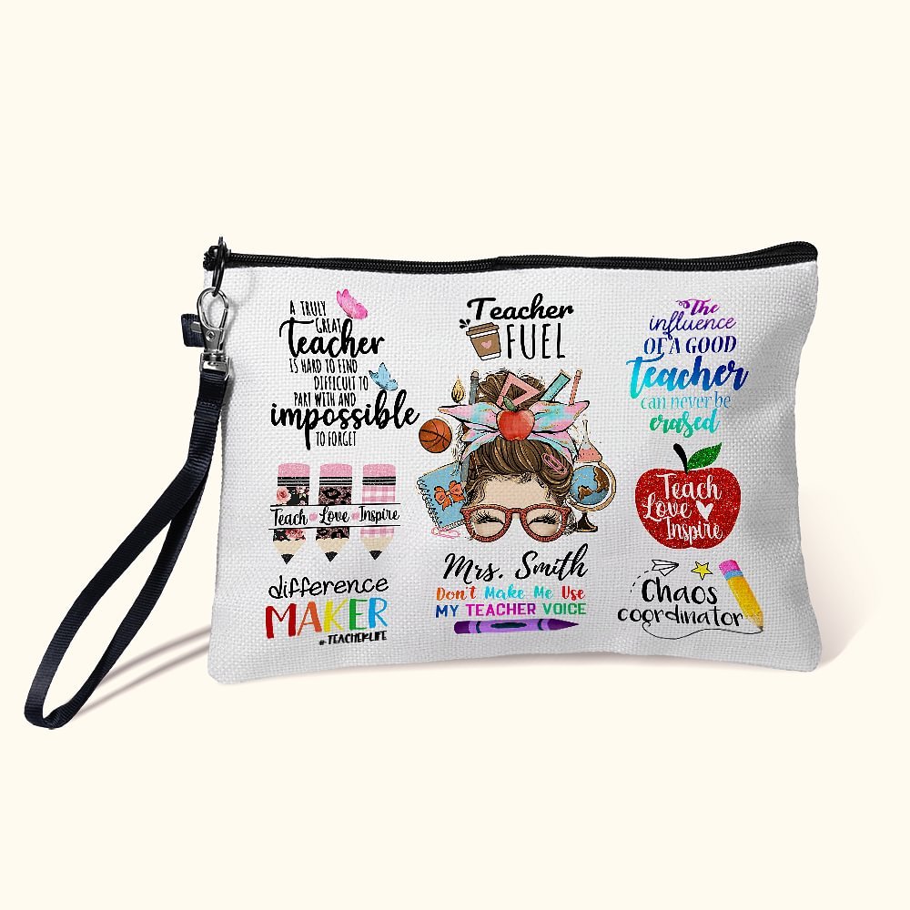 Gepersonaliseerde Schattige Vrouw Cartoon Make-up Bag met Naam Terug naar School Waardering Gift voor Leraar