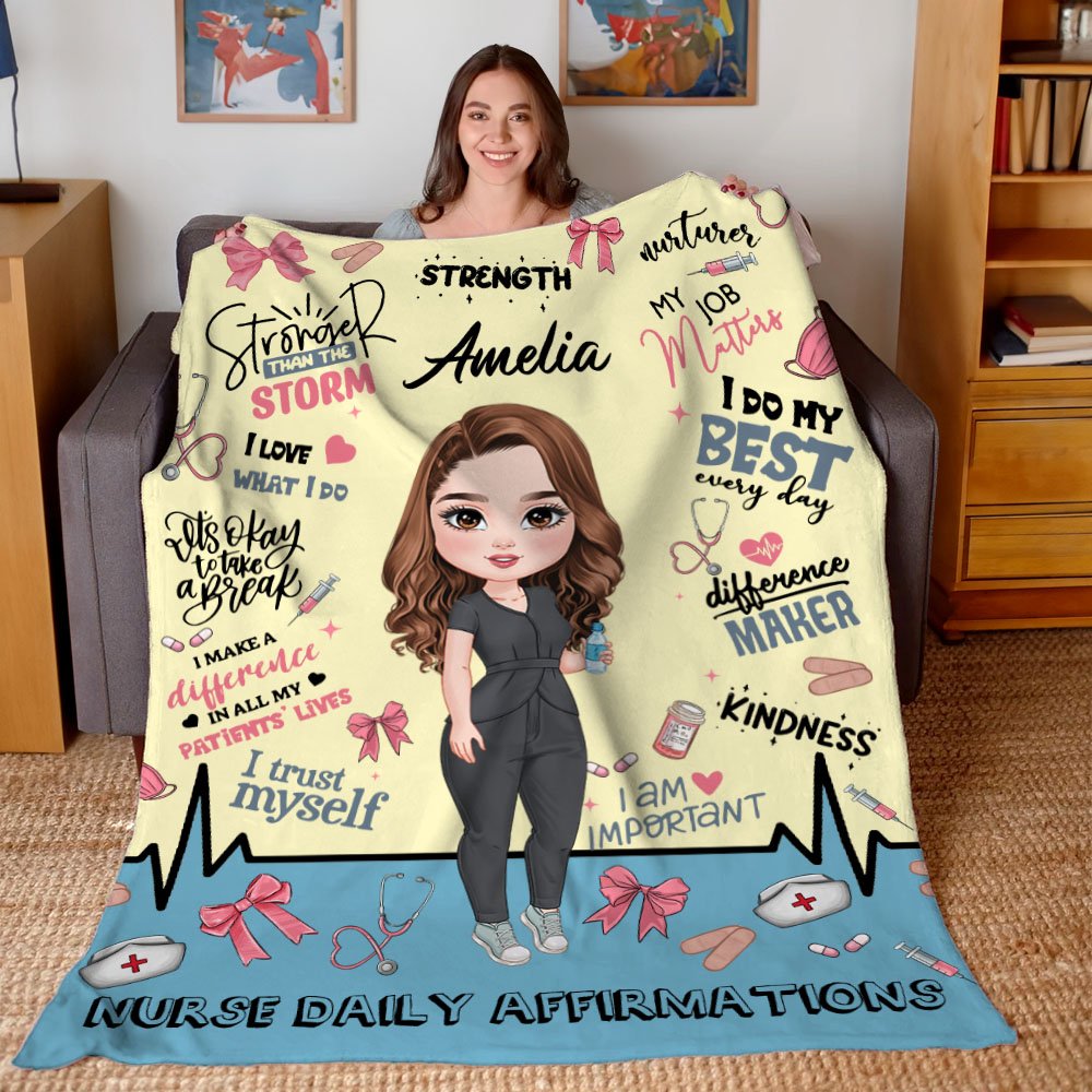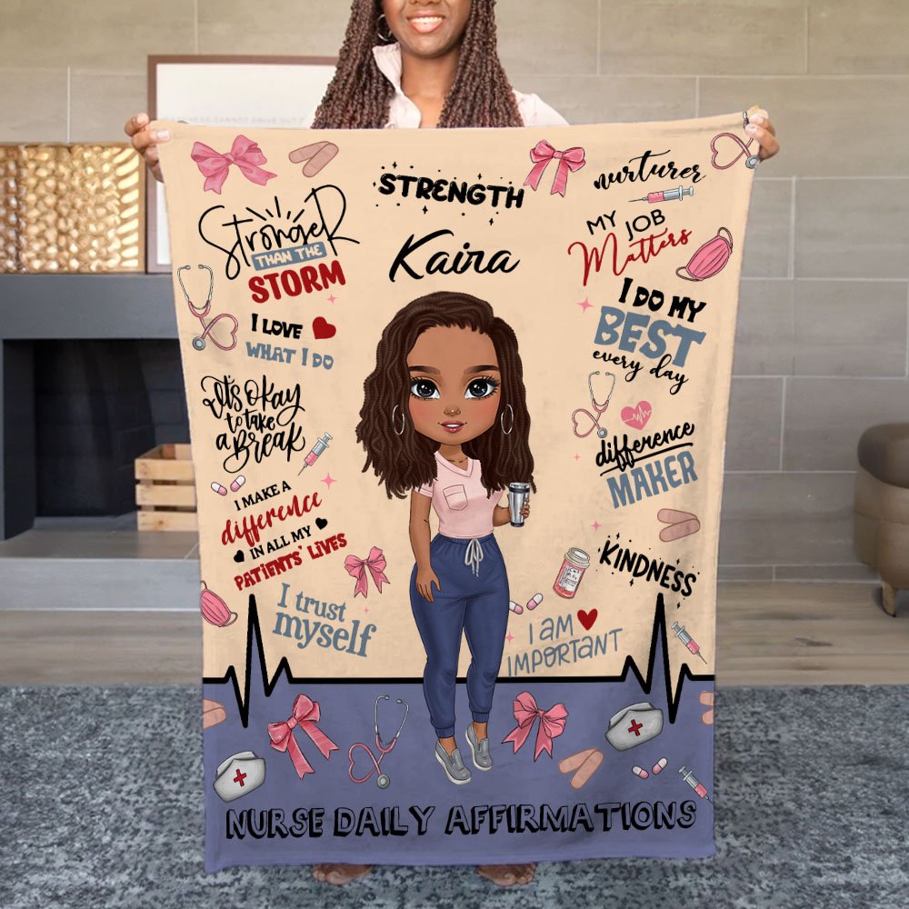 Deze deken is geïnspireerd op zelfverzekerde vrouwelijke medische werkers en combineert op slimme wijze prachtige medische illustraties met inspirerende teksten. Het ECG-patroon, de stethoscoop, het medicijnflesje en andere gedetailleerde ontwerpen laten niet alleen de professionele stijl van het medisch personeel zien, maar voegen ook een unieke artistieke charme toe. Bovendien ondersteunt de deken aangepaste namen en teksten, waardoor het nog exclusiever wordt.