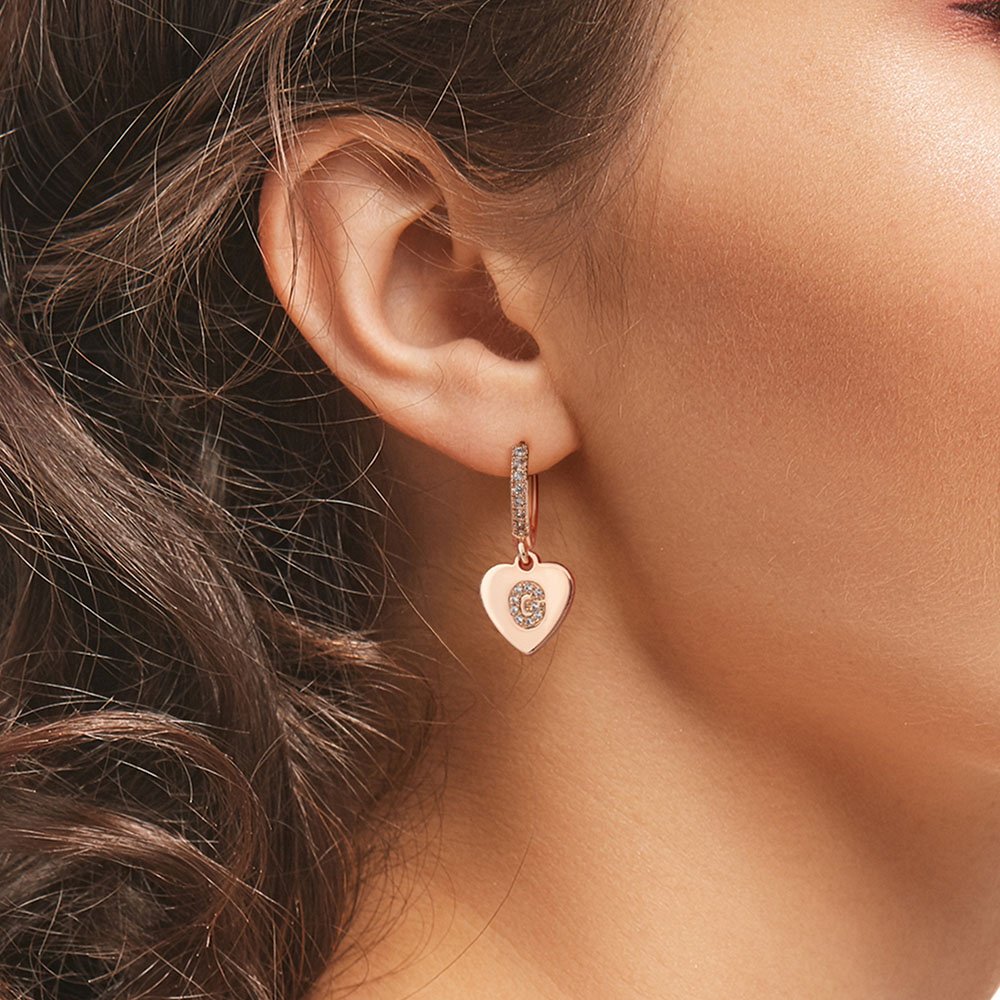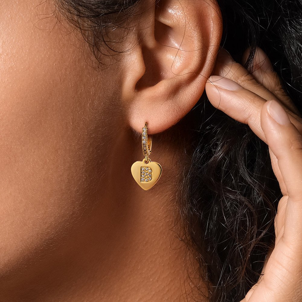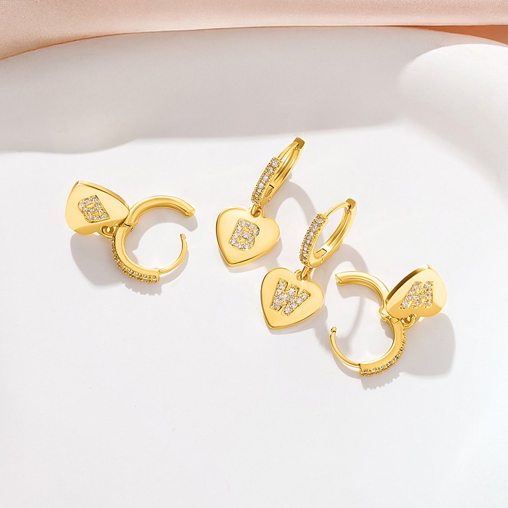 Elke oorbel heeft een delicaat hartvormig bedeltje met sprankelende zirkonia steentjes en de door jou gekozen beginletter (A-Z). De subtiele glans voegt een vleugje luxe toe, terwijl het vintage-geïnspireerde ontwerp een tijdloze aantrekkingskracht heeft.