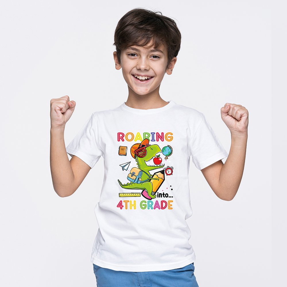 Zorg ervoor dat uw kind zich wat enthousiaster voelt om weer naar de klas te gaan! Onze collectie voor kleuters tot en met groep 6 bevat kleurrijke en leuke ontwerpen met dinosaurussen, schoolspullen en appels. Voeg plezier toe aan de stijl van je kind met dit zachte, flatterende T-shirt.