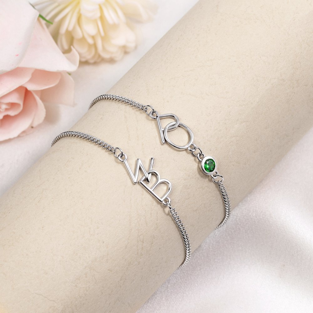 Deze armband is gebaseerd op een minimalistische stijl, waarbij in elkaar grijpende initialen worden gecombineerd met een delicate ketting om low-key maar betekenisvolle gepersonaliseerde sieraden te creëren. De twee initialen zijn nauw met elkaar verbonden en symboliseren de onlosmakelijke emotionele band tussen de twee kanten. Ze zijn zowel modieus als rijk aan diepe betekenis. Je kunt er ook voor kiezen om de geboortesteen op de armband aan te passen om hem nog specialer te maken.