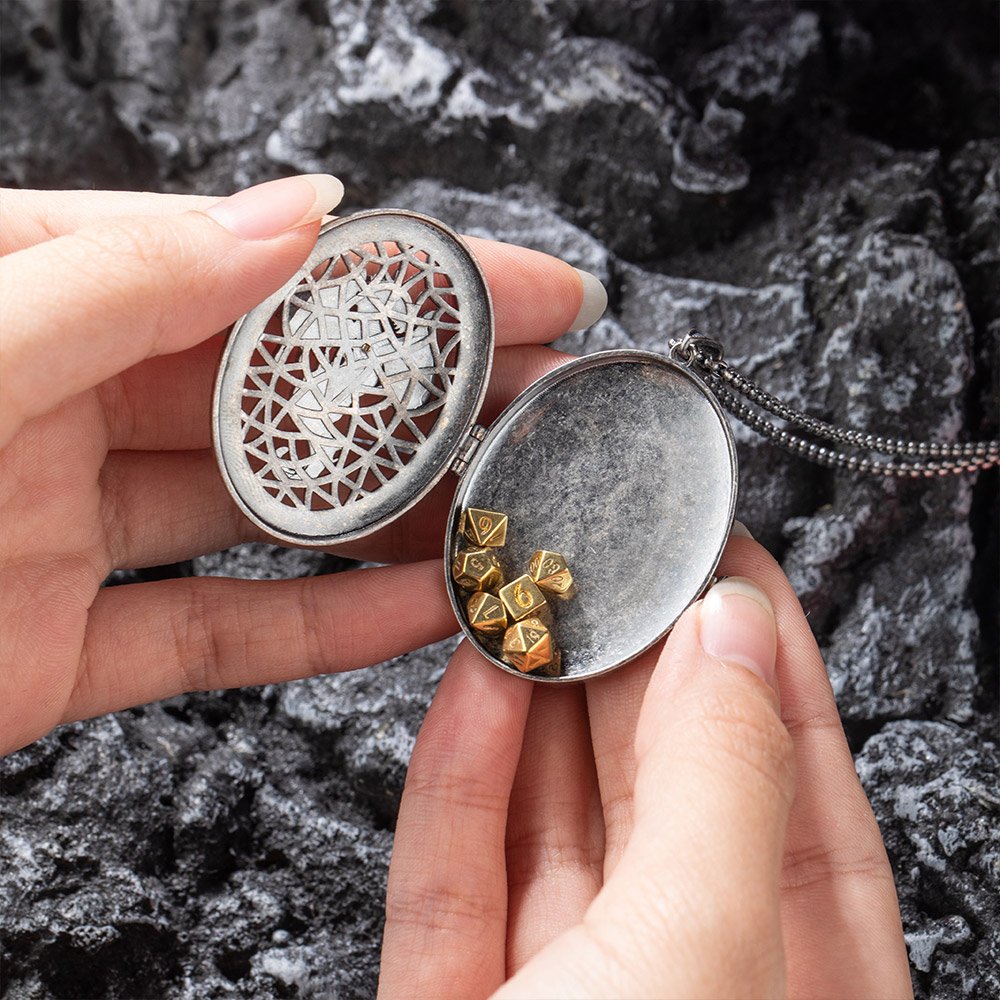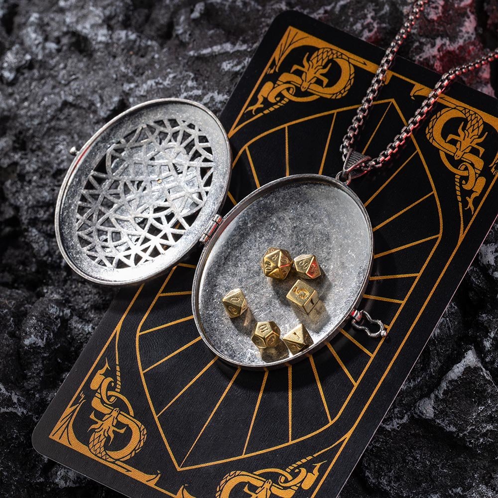 Dobbelstenen zijn noodzakelijk voor het DND-spel. Dankzij het ontwerp van het dobbelstenen hangerdoosje kunnen liefhebbers van het DND-spel de dobbelstenen bij zich dragen. De pendant box kan ook geopend worden om te dobbelen, wat praktisch en draagbaar is.