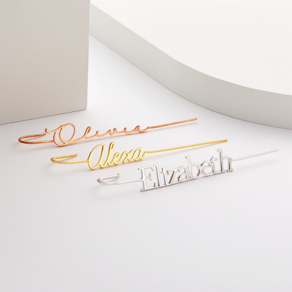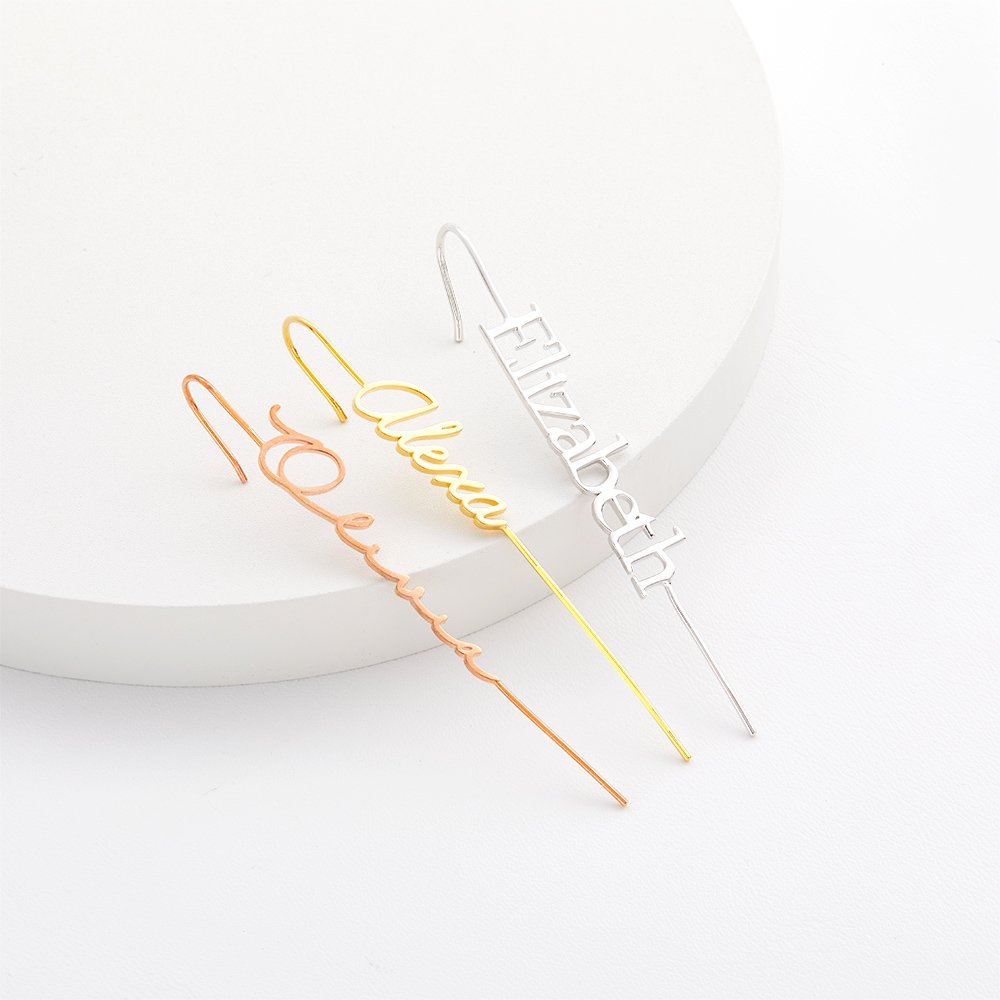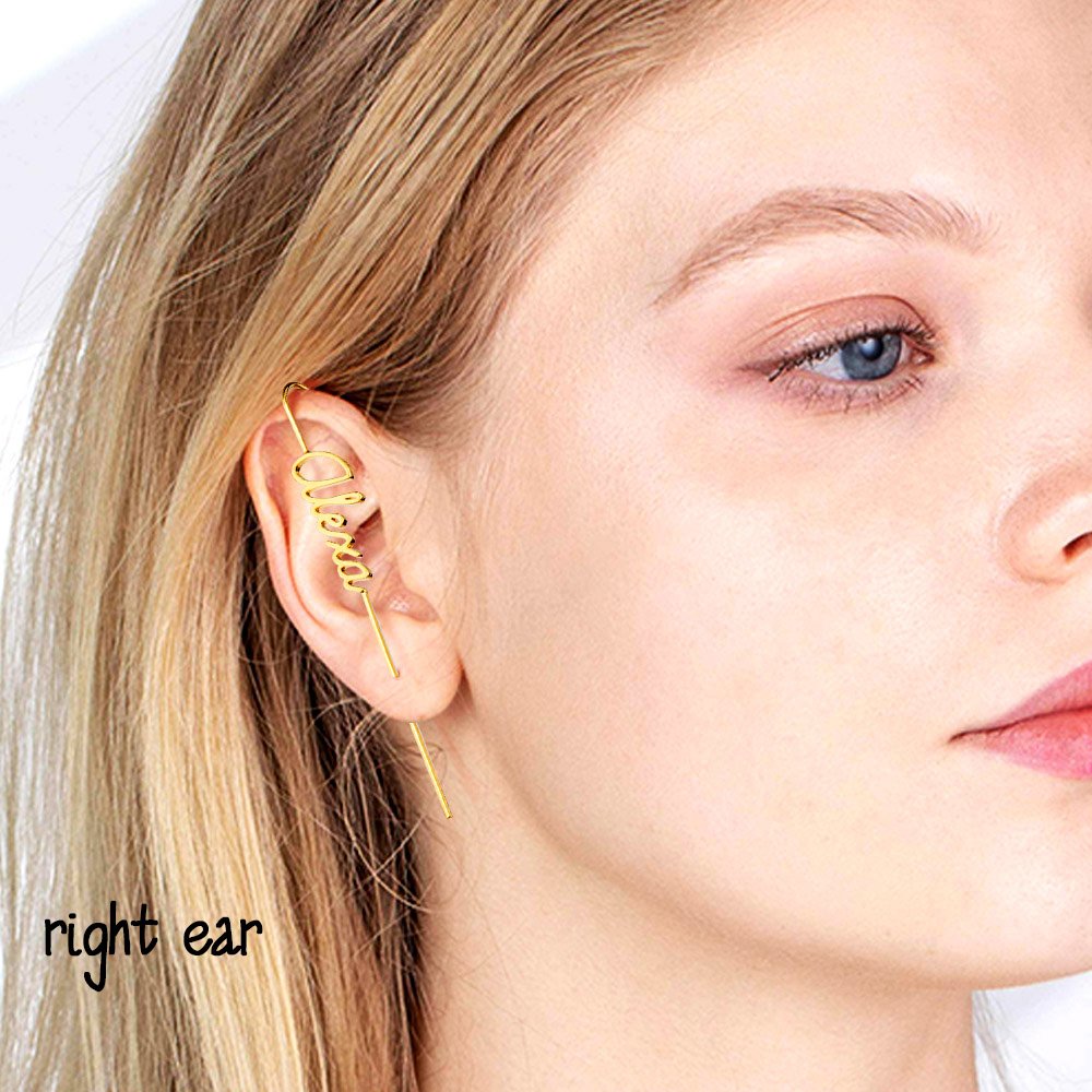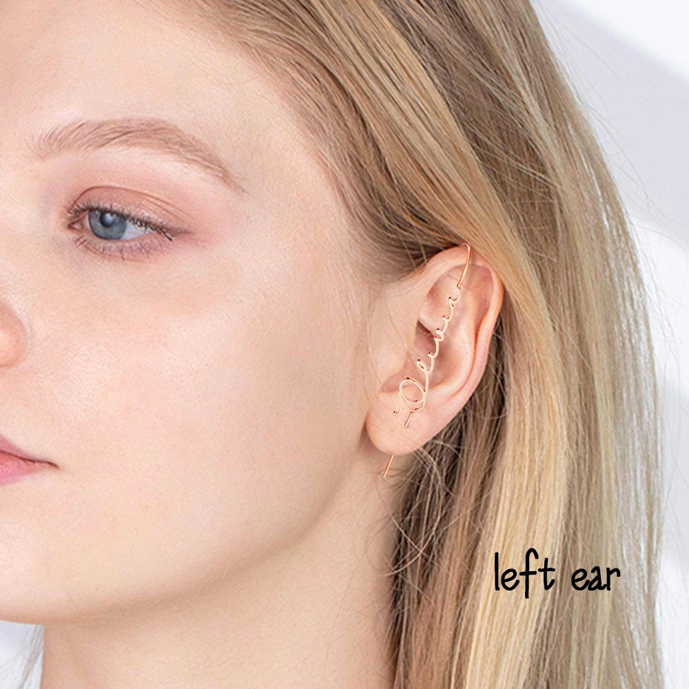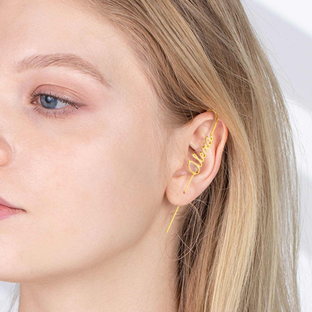 The unique design gracefully hugs your earlobe, creating a captivating and eye-catching look. The crawler style adds a touch of modernity and sophistication, making these earrings a versatile choice for casual and formal occasions. What sets these earrings apart is the ability to personalize them with your name. Adding your name adds a personal touch, making these earrings a meaningful and sentimental accessory representing your identity and style.