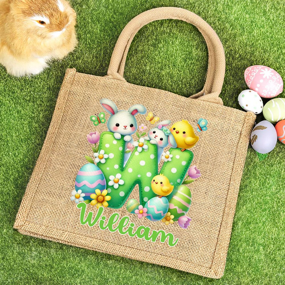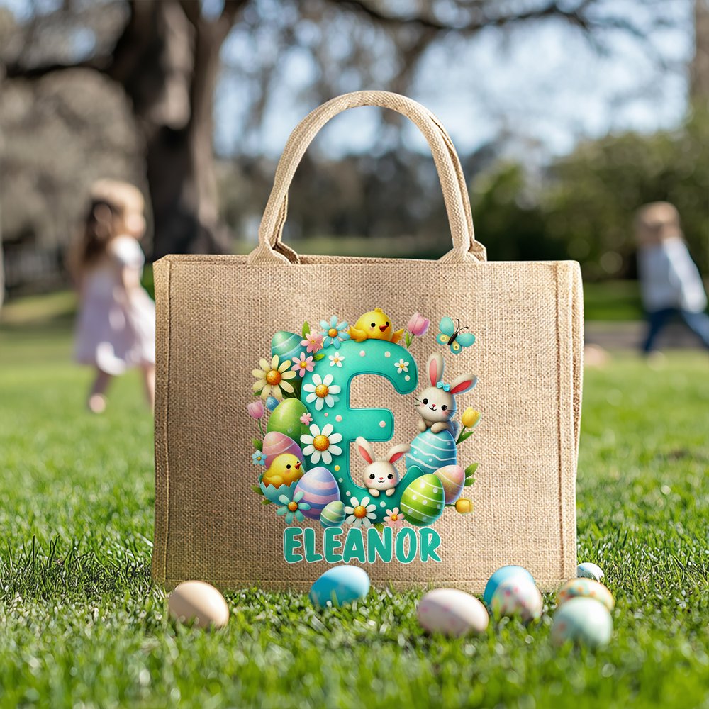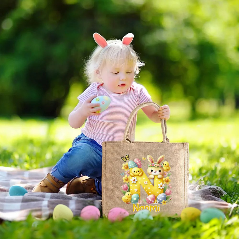 Deze tas is bedrukt met schattige paasinitialen en een eigen naam, gecombineerd met konijntjeselementen en heeft een levendige en speelse stijl. Hij is verkrijgbaar in verschillende stijlen en past perfect bij de sfeer van de paasvakantie, boordevol kinderlijk plezier en zeker om op te vallen.