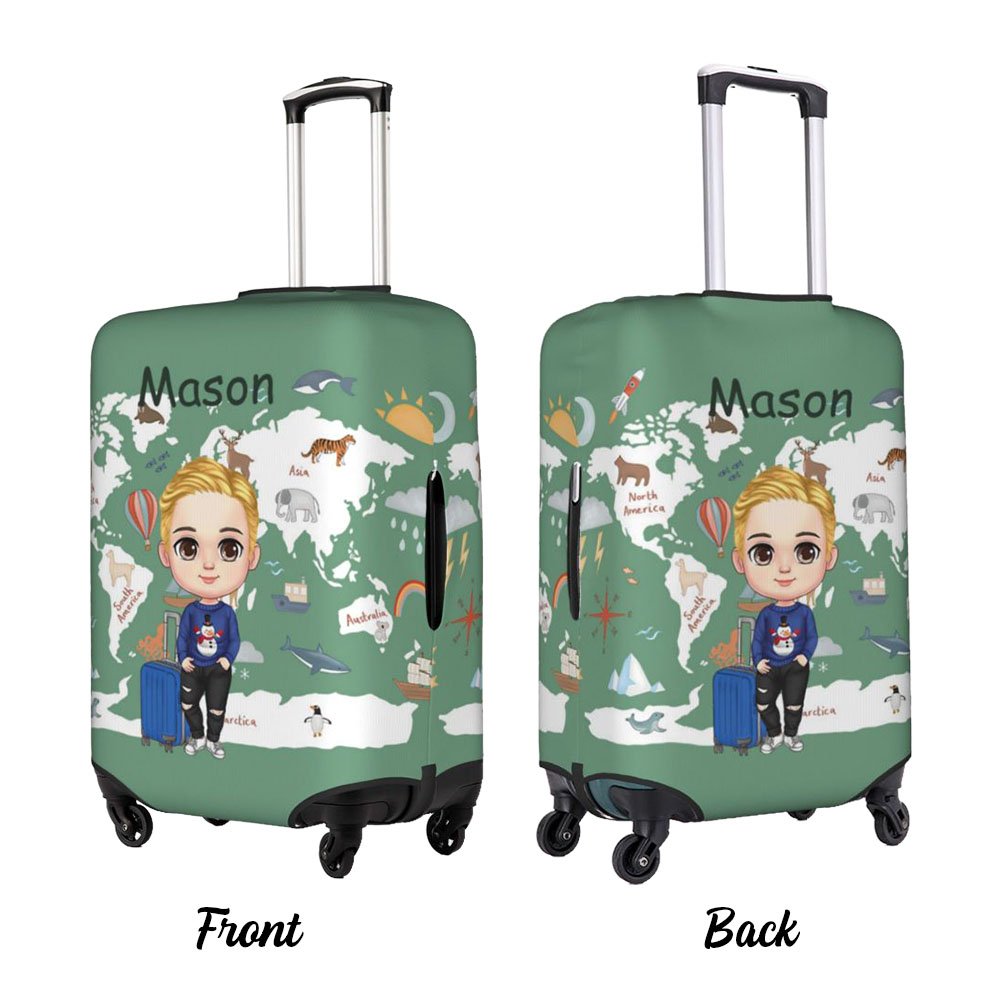 Deze gepersonaliseerde bagagehoes heeft levendige stripfiguren die kunnen worden aangepast aan het uiterlijk en de voorkeuren van het kind. Je kunt kiezen tussen jongens- of meisjesfiguren en gezichtskenmerken, haar en kleding personaliseren. Dit hoge niveau van personalisatie zorgt ervoor dat de bagage opvalt op carrousels.