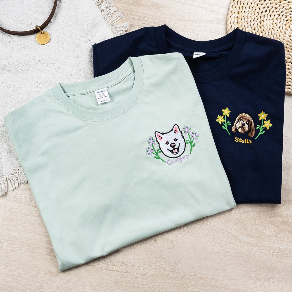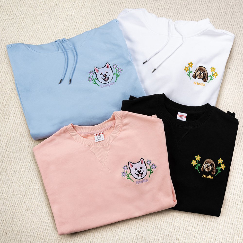 Deze kleding combineert zijn schattige afbeelding met bloemen door het uploaden van foto's van huisdieren, wat zegeningen en liefde voor huisdieren symboliseert. Je kunt kiezen uit verschillende kleuren en je kunt ook de naam van je huisdier aanpassen om er een uniek logo voor de identiteit van de eigenaar van het huisdier van te maken.
