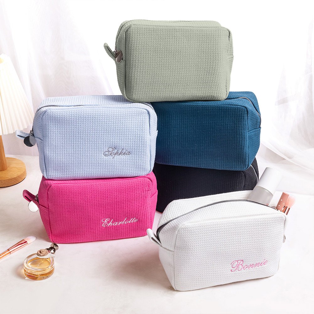 Deze toilettas kan worden gepersonaliseerd met een geborduurde naam. U kunt kiezen uit 6 stijlvolle kleuren voor de tas en 27 draadkleuren voor het borduurwerk, zodat er altijd een combinatie is die bij uw persoonlijke smaak past.