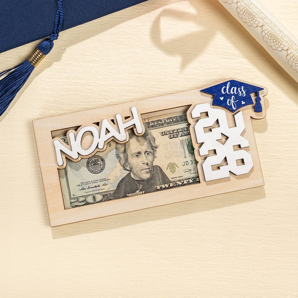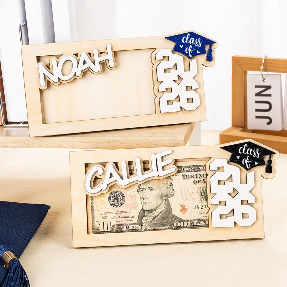 Gepersonaliseerde Grad Cap Houten Geldhouder Geld Envelop met Naam en Gegraveerde Tekst Klasse van 2026 Afstudeercadeau voor Afgestudeerden