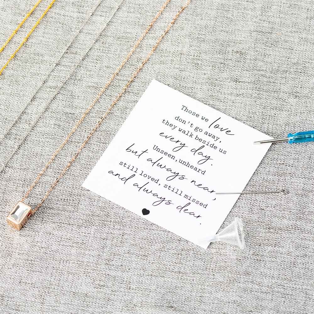 De eenvoudige en chique kubusvormige hanger is het perfecte cadeau voor iedereen die zijn of haar moeder, vader, opa, oma, baby, kind of huisdier heeft verloren, om je gevoelens van verdriet over te brengen en je liefde aan hen te tonen. Dit is een geschenk dat hun hart zal raken en troost zal bieden tijdens een moeilijke tijd in hun leven.
