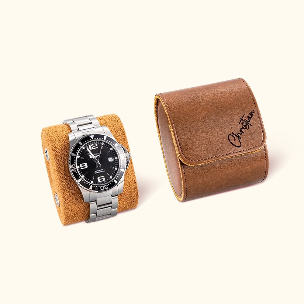 Onze horlogedoosjes zijn een must-have accessoire voor mannen, ontworpen om een vleugje verfijnde elegantie toe te voegen aan het opbergen van je horloge. De horlogedoos heeft een minimalistische wijzerplaat met monogrammen in 16 designs waaruit je kunt kiezen en je kunt hem ook aanpassen met een naam of initialen om je stijl te weerspiegelen.