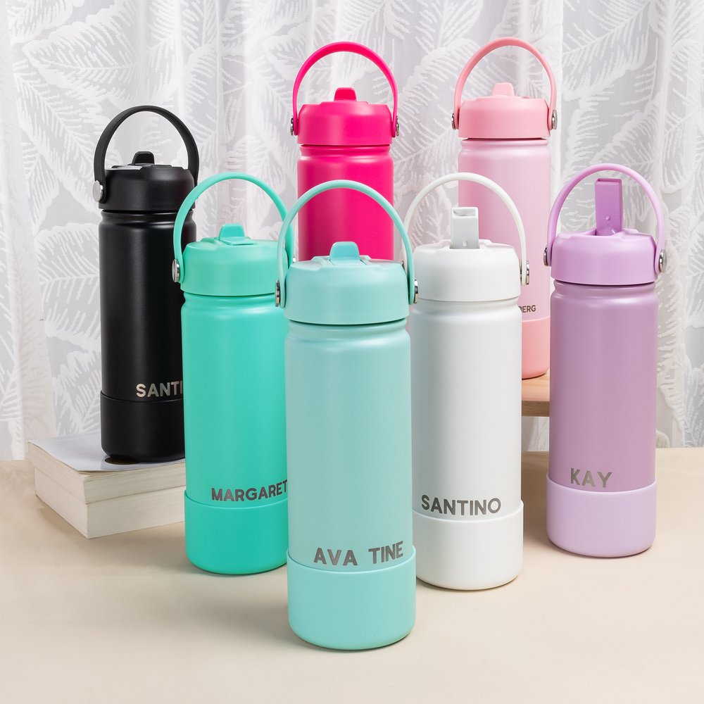 Deze waterfles heeft een fris en zacht kleurenpalet, met 7 kleuropties om uit te kiezen, waardoor esthetiek perfect samengaat met praktische elegantie. Hij kan worden gegraveerd met een eigen naam, waardoor elke slok een persoonlijke ervaring wordt en dagelijks gebruik een unieke uitdrukking van individualiteit en zorg wordt.