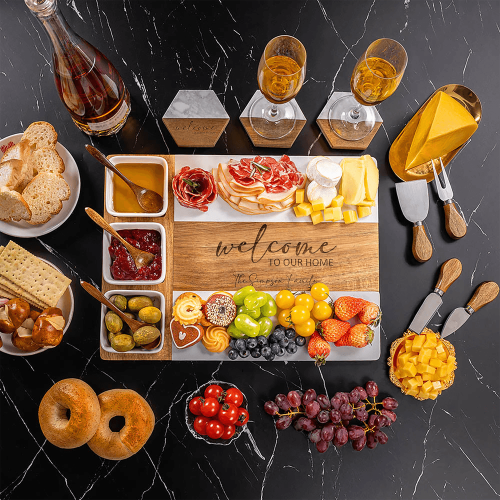 Gepersonaliseerde Gegraveerde Naam Tekst Marmer 11 Pcs Snijplank Onderleggers Set met Keramische Kom Geboorte Huwelijk Moederdag Cadeau voor Familie Vriend