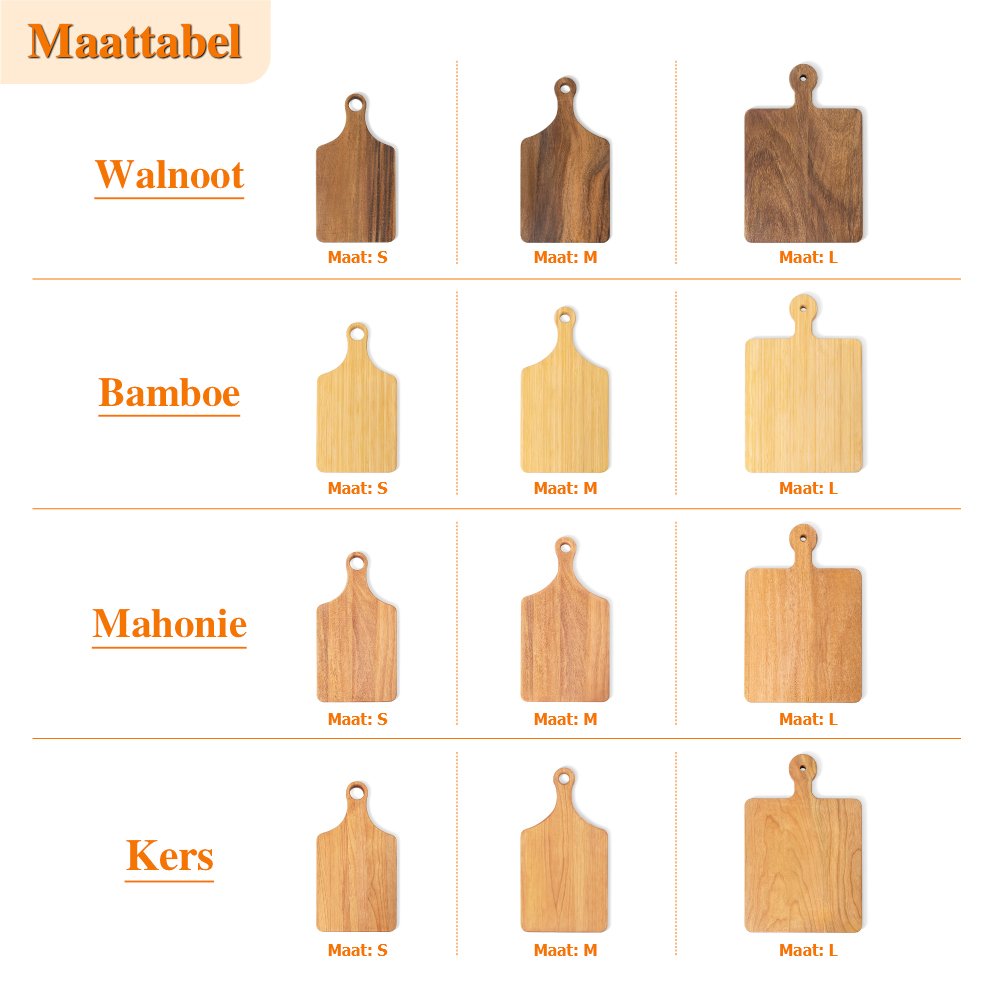 Deze snijplank is gemaakt van hoogwaardig hout, dat zorgvuldig is gepolijst en behandeld voor een glad en duurzaam oppervlak. De snijplank vormt zich naar de ergonomische handgreep, die het makkelijker maakt voor de gebruiker om de snijplank te hanteren of te gebruiken. De toevoeging van het handvat verbetert niet alleen de draagbaarheid van de snijplank, maar maakt hem ook flexibeler in de keuken, of het nu gaat om het snijden van groenten, het bereiden van ingrediënten of als tijdelijk dienblad, dat gemakkelijk kan worden gehanteerd.