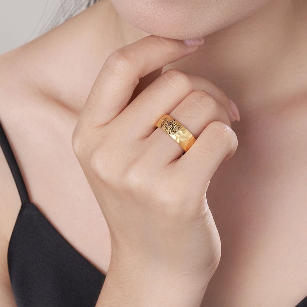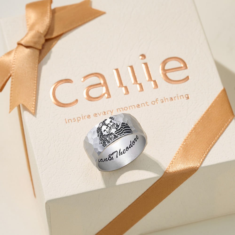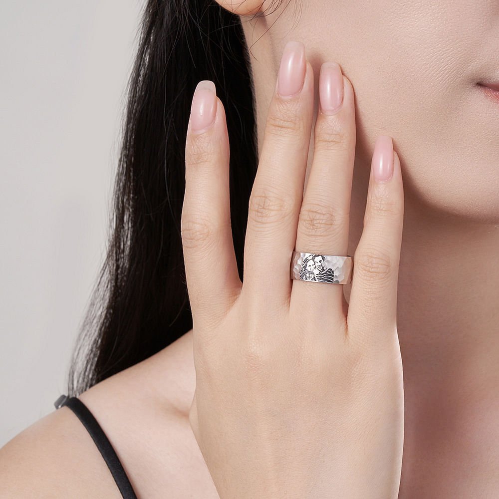 The personalized engraving on this ring goes beyond a simple name or date, allowing you to commemorate the essence of the individual truly. Whether it's a beloved family member, a loyal pet, or a close friend, we will skillfully transform your provided photo or image into a stunning hand-drawn sketch that captures the unique features and expressions of your loved one.