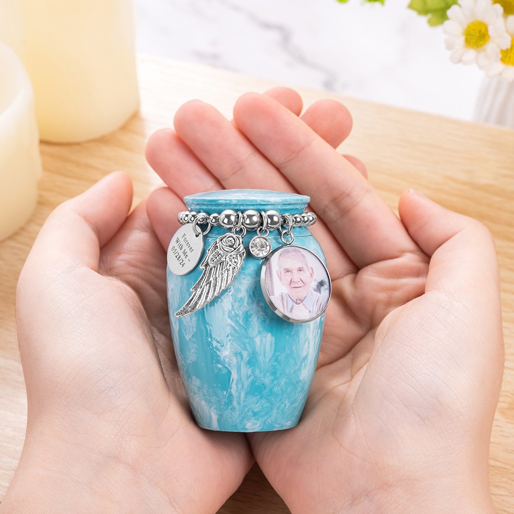 Ontworpen om een kleine hoeveelheid as in te bewaren, kun je met deze mini-urn je dierbaren dicht bij je hart houden. Het biedt een speciale plek voor hun overblijfselen en troost in moeilijke tijden.