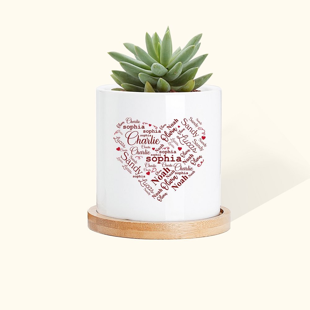 1.Houd er rekening mee dat als er minder dan 21 namen zijn ingevoerd, sommige van de namen die je hebt ingevoerd worden herhaald om het hartontwerp te voltooien, zodat elke plantenbak prachtig is ontworpen. 2. Planten zijn niet inbegrepen.