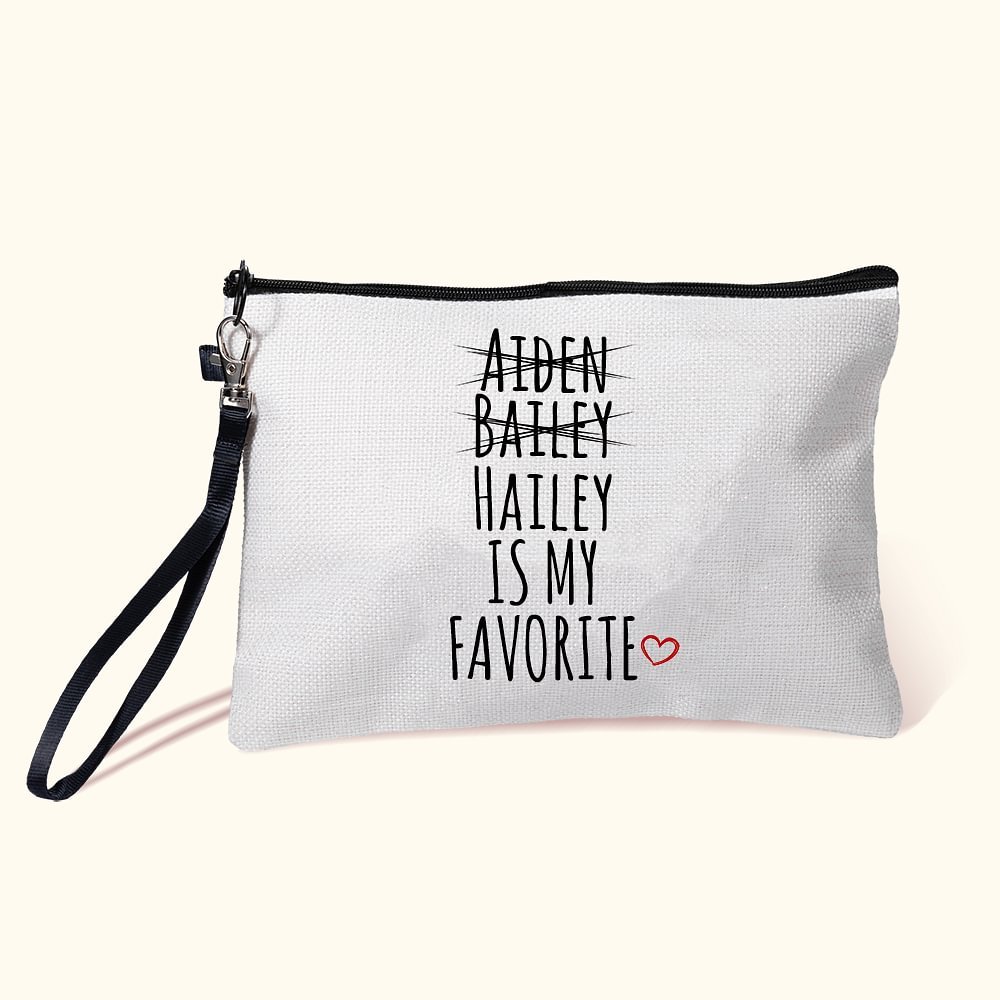 Dit make-uptasje viert de speciale band tussen familieleden door prominent de namen van dierbare familieleden weer te geven in een speelse, grappige stijl. Dit persoonlijke tintje verandert een eenvoudig huishoudelijk item in een dierbaar aandenken dat jarenlang zal worden aanbeden, waardoor elk tasje een uniek meesterwerk wordt.