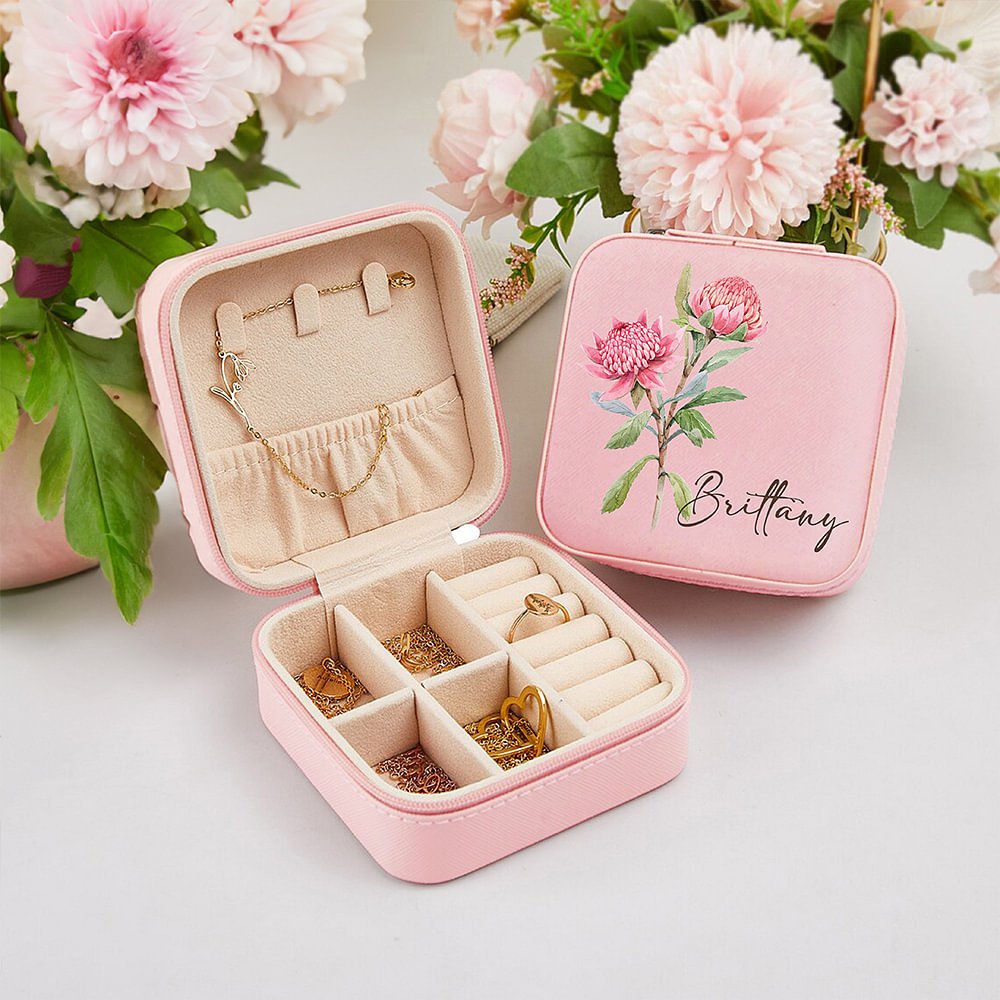 Wat dit juwelendoosje zo bijzonder maakt, is het persoonlijke tintje dat je eraan kunt toevoegen. Je naam of een speciale boodschap kan prachtig worden afgedrukt op het leer, waardoor het uniek van jou wordt. Het is meer dan een opbergdoos; het is een gepersonaliseerde schatkist die tot je hart spreekt.