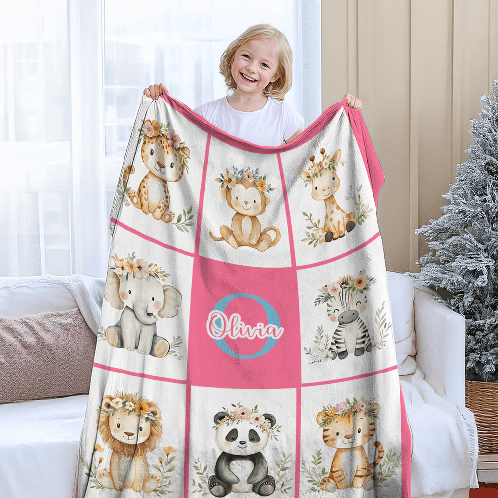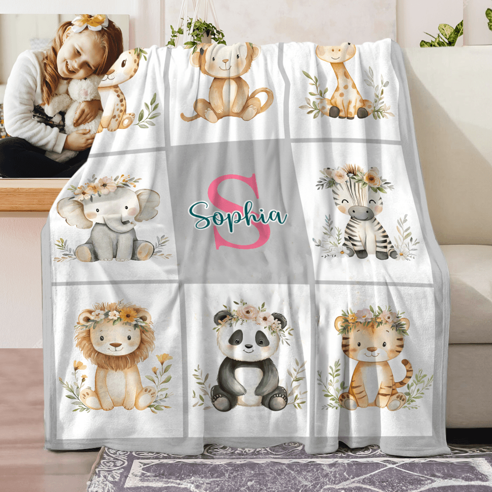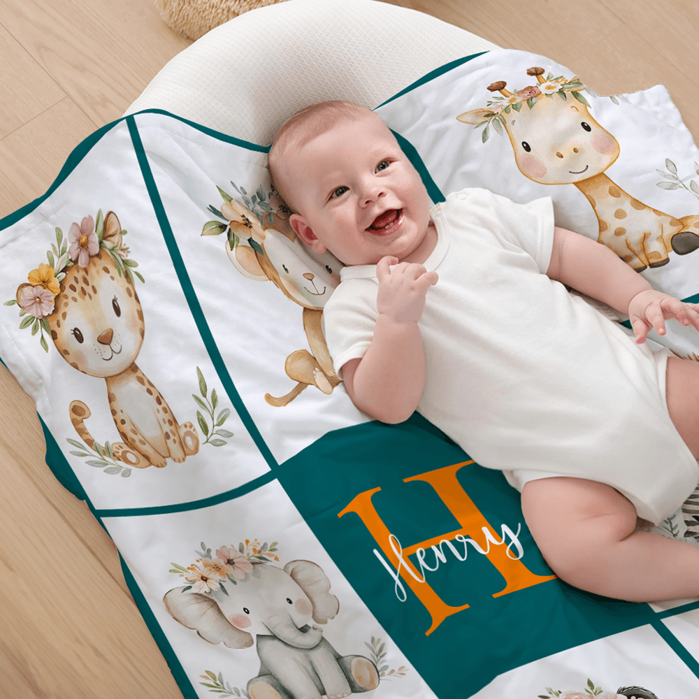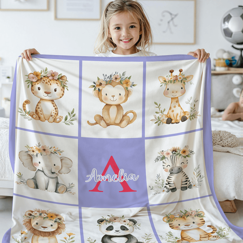 De frisse en speelse stijl, met schattige dierenmotieven versierd met kleine bloemetjes, past perfect bij de liefde van kinderen voor dieren. Ondersteunt initialen en namen op maat, waardoor de deken een unieke identificatie voor je kind wordt - een bevredigende visuele esthetiek terwijl het gevoel dat ze erbij horen wordt versterkt.